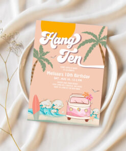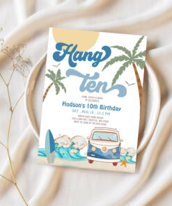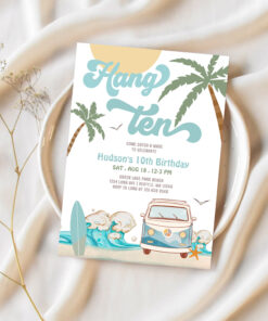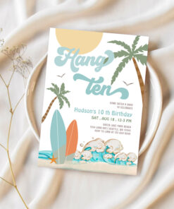 10th Birthday Hang Ten Surfing Birthday Party Invitation