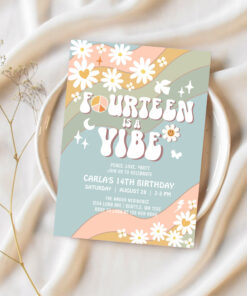 14 Is A Vibe Daisy Hippie 70S Retro Birthday Invitation