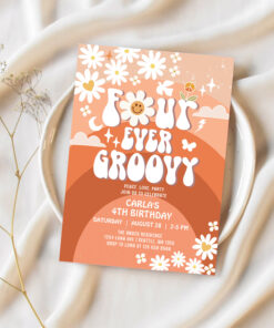 4 Ever Young Fall Groovy Four Ever Groovy Birthday Invitation