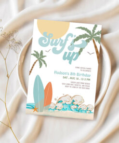 Any Age Boy Surf Surfing Birthday Beach Party Invitation