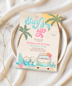 Pink Mint Aqua Girl Surfs Up Surfing Birthday Invitation