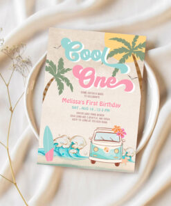 Pink Mint The Big One Surfing 1st Birthday Invitation