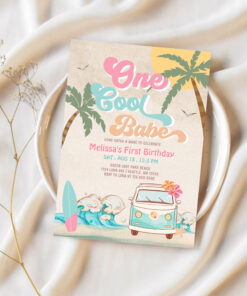 Pink Mint One Cool Babe Surfing 1st Birthday Invitation