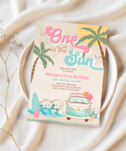 Pink Mint One In The Sun Surfing 1st Birthday Invitation