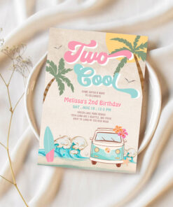 Pink Mint Two Cool Surfing 2nd Birthday Invitation