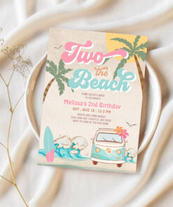 Pink Mint Two The Beach Surfing 2nd Birthday Invitation