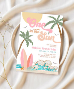 Pink Peach Girl One In The Sun Surf 1st Birthday Invitation