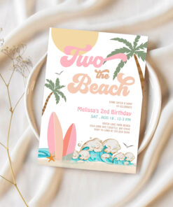 Pink Peach Girl Two The Beach Surfing 2nd Birthday Invitation
