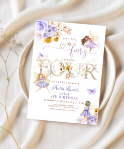 Purple Fairy Butterfly Magical Floral 4th Birthday Invitation