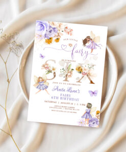 Purple Fairy Butterfly Magical Floral 5th Birthday Invitation