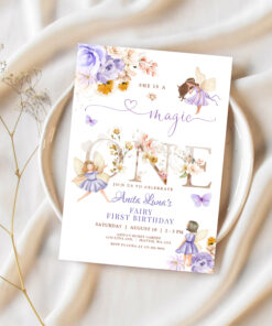 Purple Fairy Magic One Birthday Butterfly Magical Invitation