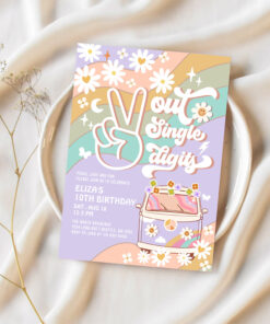 Purple Peace Out Single Digit Groovy 10th Birthday Invitation