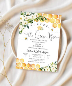 Queen Bee Gender Neutral Mama To Bee Baby Shower Invitation