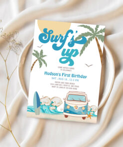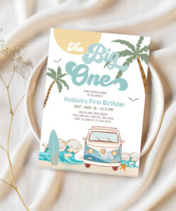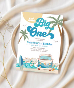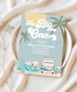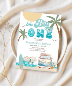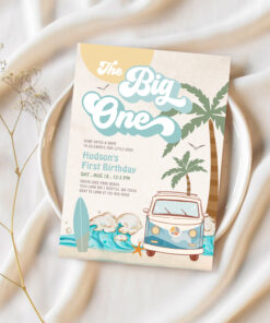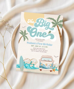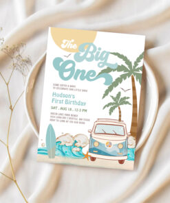 Retro Boy The Big One Surfing 1st Birthday Invitation