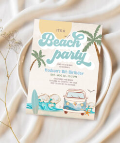 Retro Boy Its A Beach Party Surfing Birthday Part Invitation