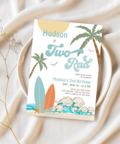 Retro Boy Surf Surfing 2nd Birthday Two Rad Party Invitation