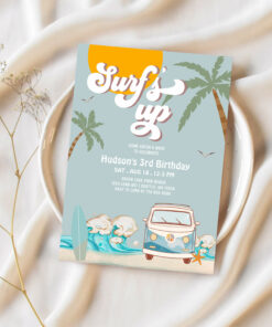 Retro Boy Any Age Surfs Up Surfing Birthday Party Invitation