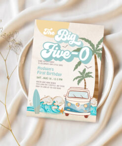 Retro Boy The Big Five 0 Surfing 50th Birthday Invitation