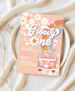 Stay Groovy Hippie 70S Retro 1st Birthday Invitation