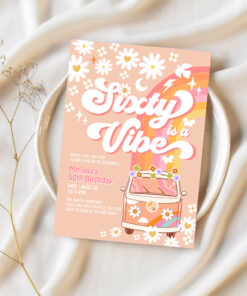 Sixty Is A Vibe Van Groovy Daisy Hippie Birthday Invitation