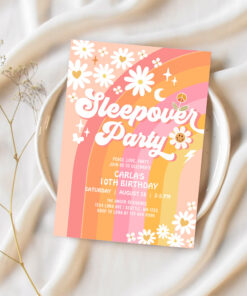 Sleepover Party Daisy Retro Hippie Birthday Invitation