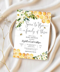 Soon To Bee A Family Of Three Baby Shower Invitation
