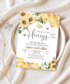 Sunflower Bee Twin Triplet Honey Baby Shower Invitation