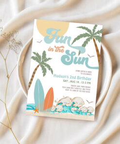 Surf Surfing Fun In The Sun Birthday Beach Party Invitation