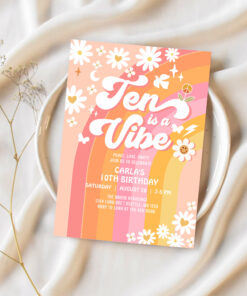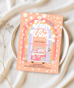 Ten Is A Vibe Daisy Groovy Van 10th Birthday Invitation