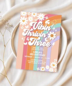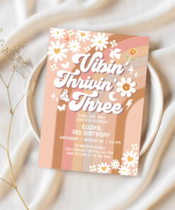 Vibin Thrivin And Three Hippie Retro Birthday Invitation