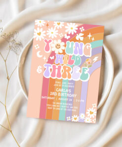 Young Wild And Three Groovy 3rd Birthday Invitation