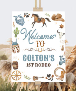 Cowgirl 1st Rodeo Blue Welcome Sign