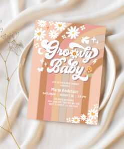 Cream Groovy Baby Hippie Retro Baby Shower Invitation