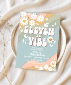 Eleven Is A Vibe Daisy Hippie 70S Retro Birthday Invitation