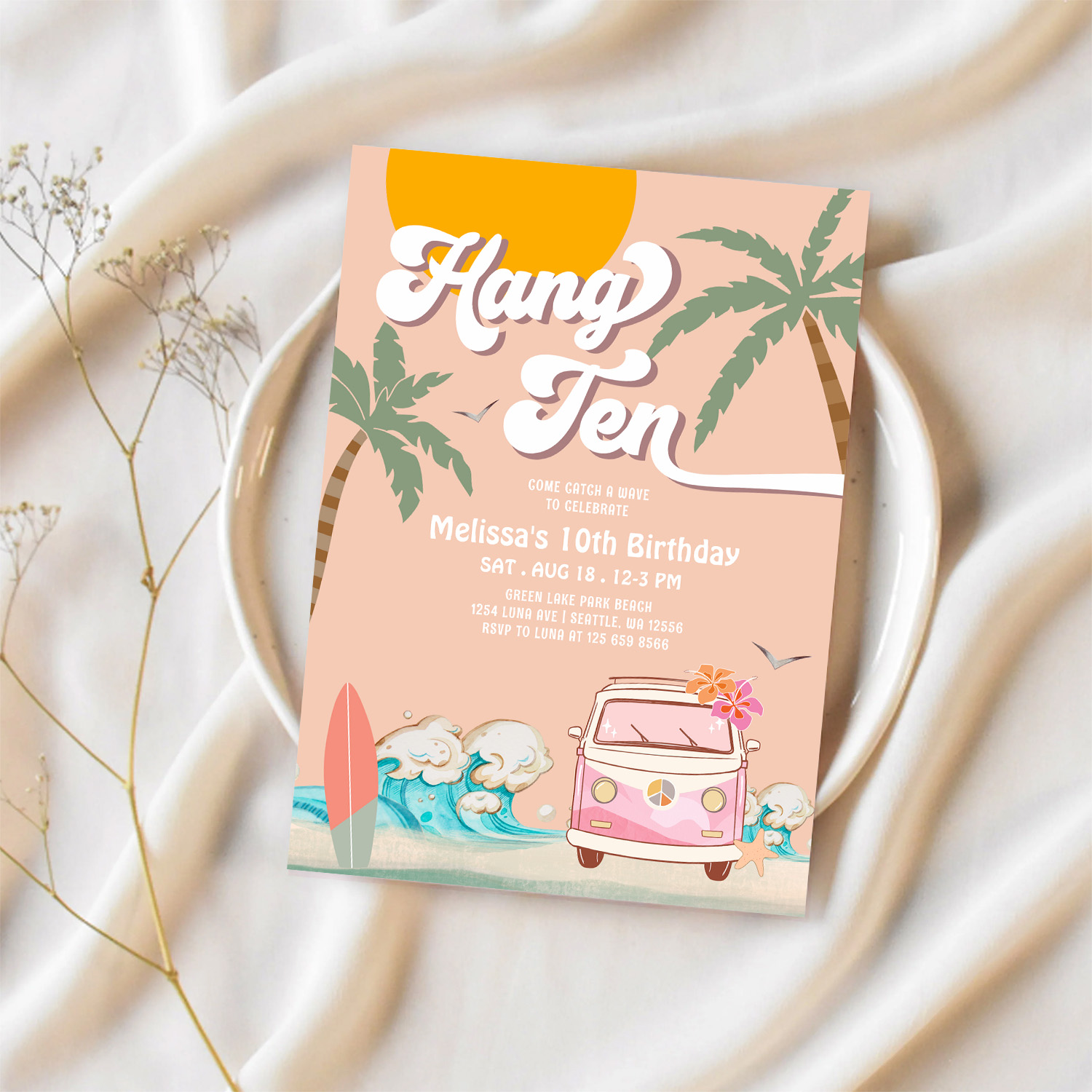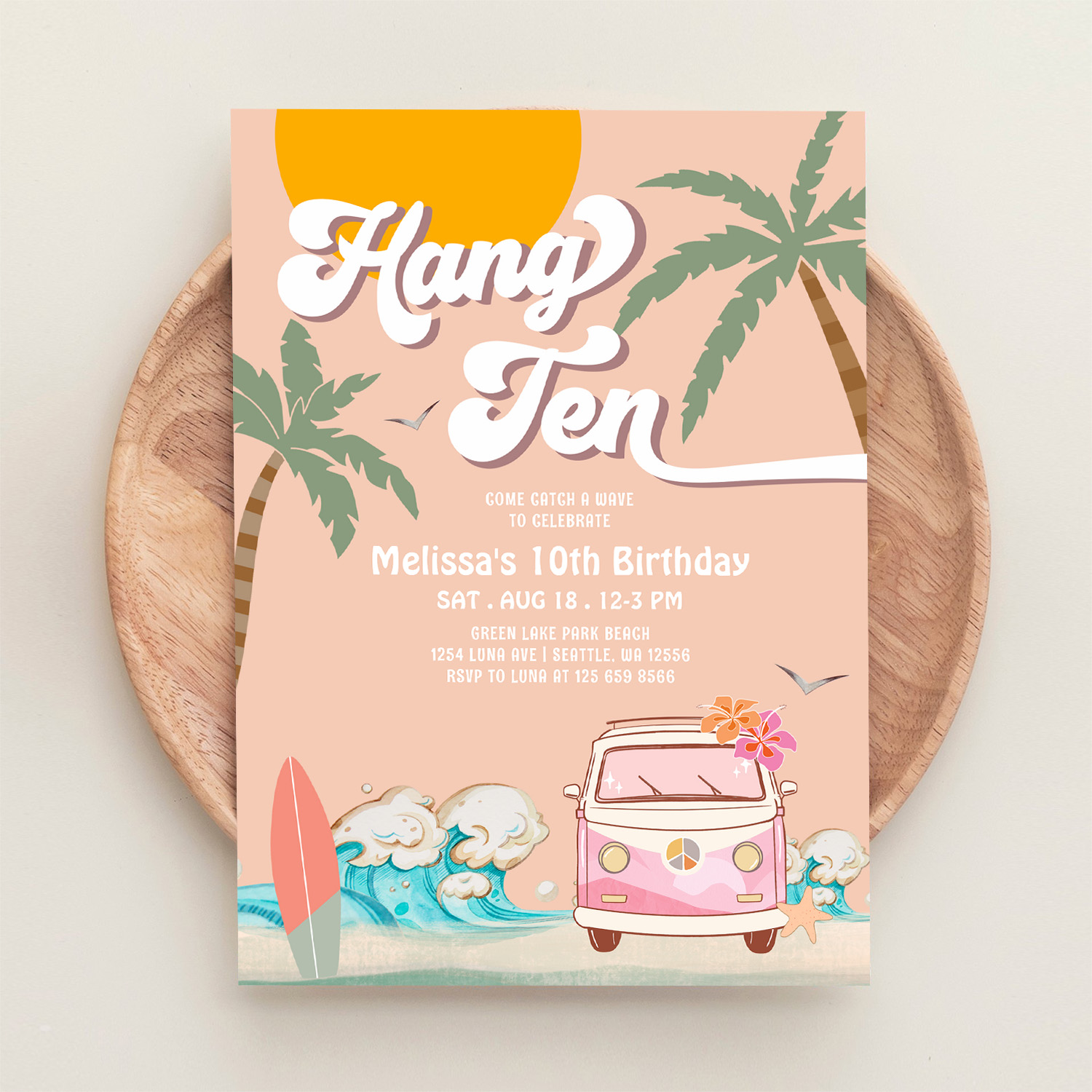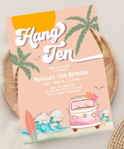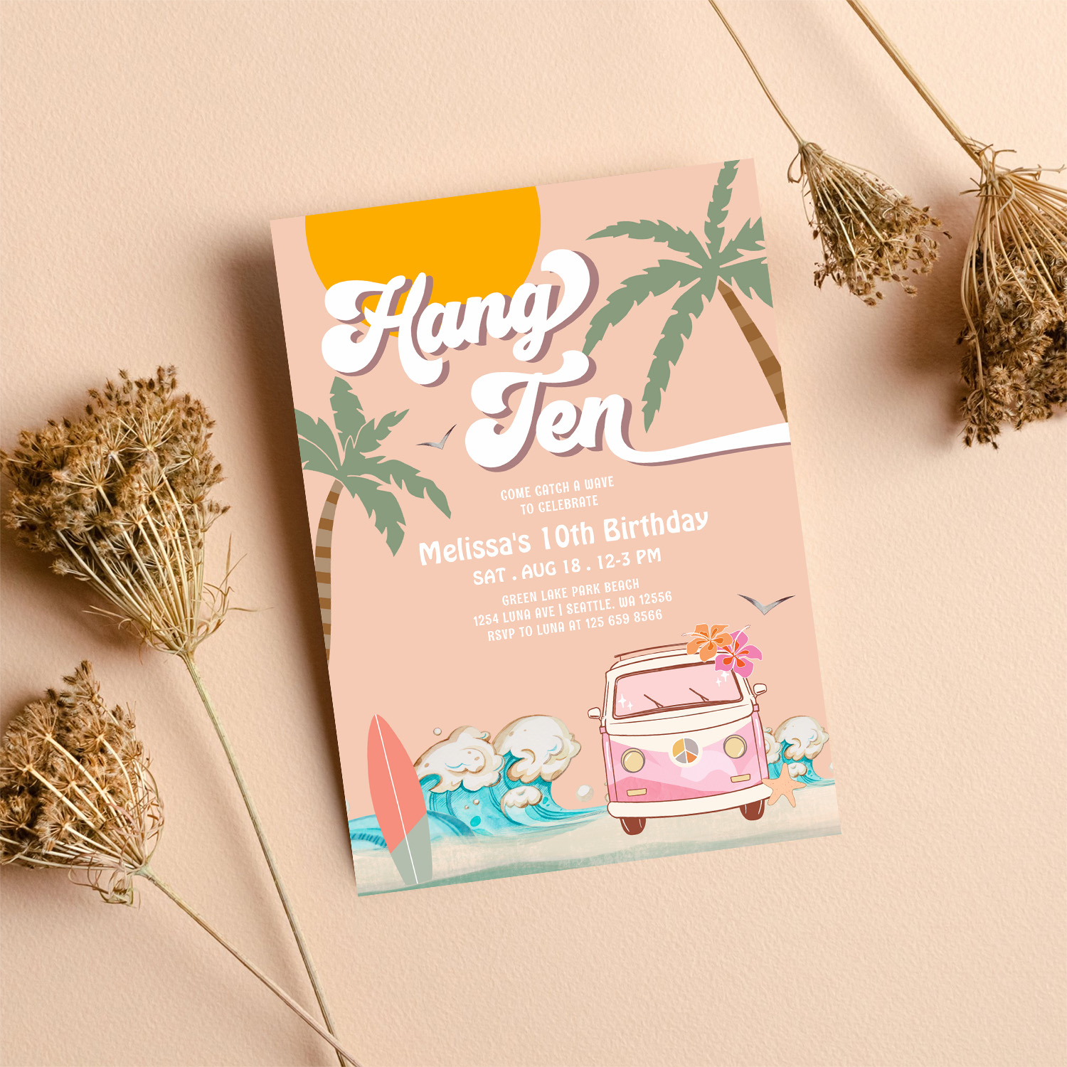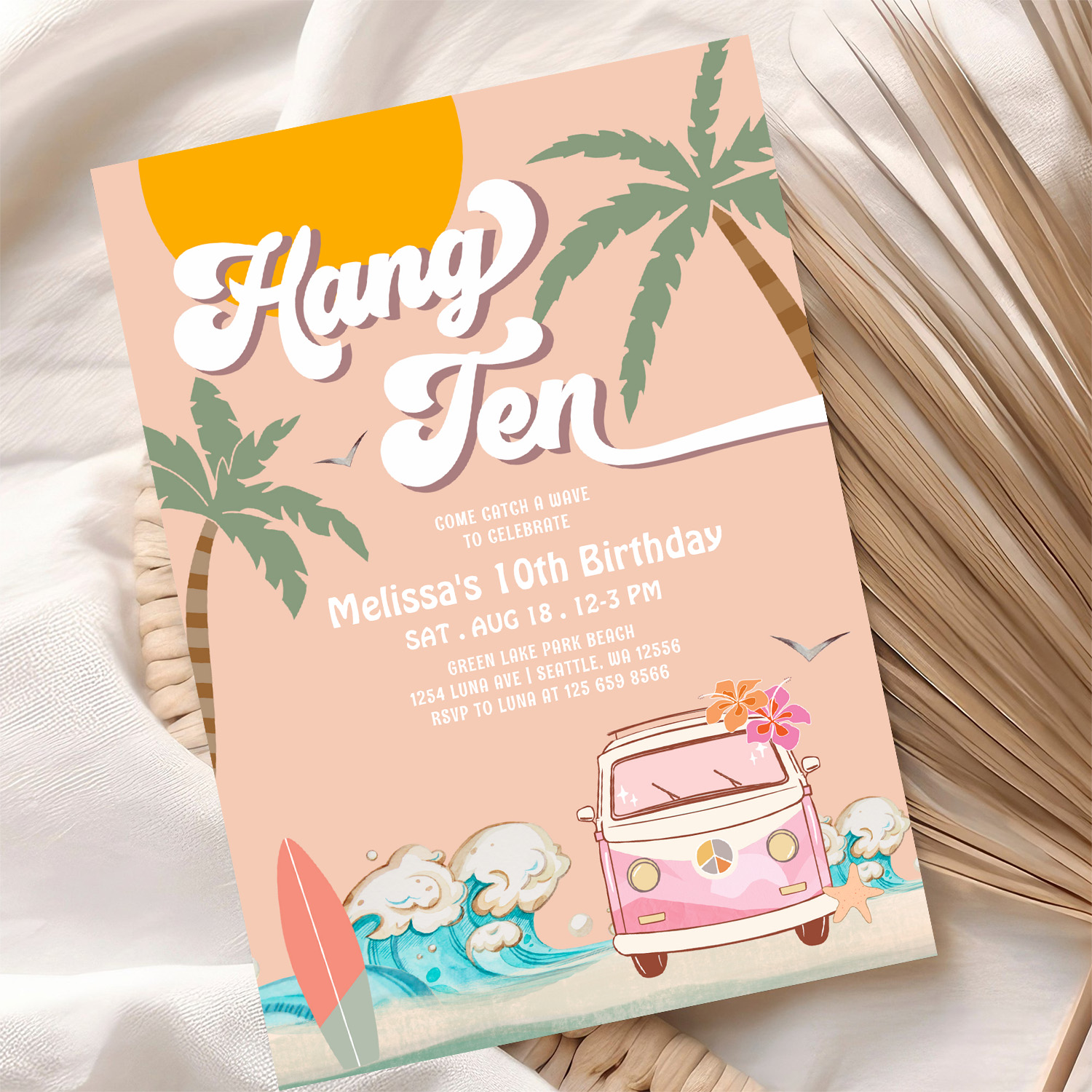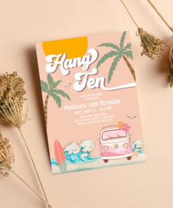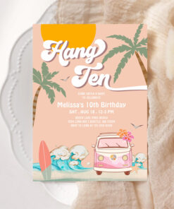 10th Birthday Hang Ten Surfing Birthday Party Invitation