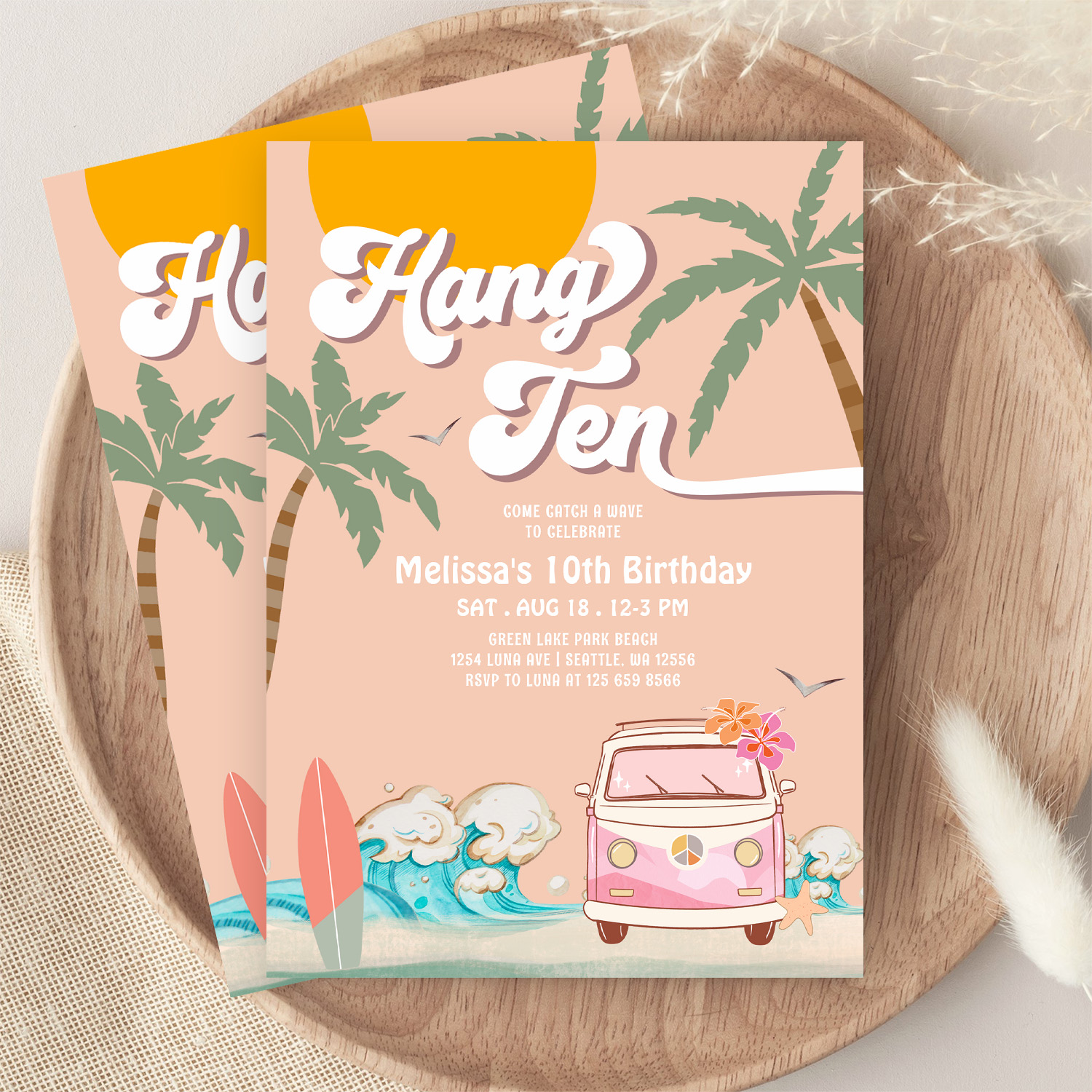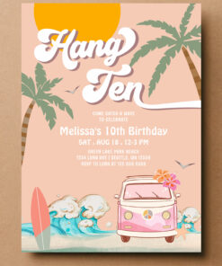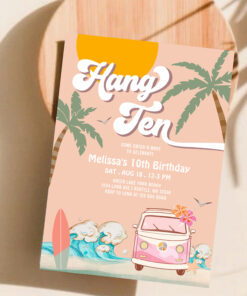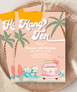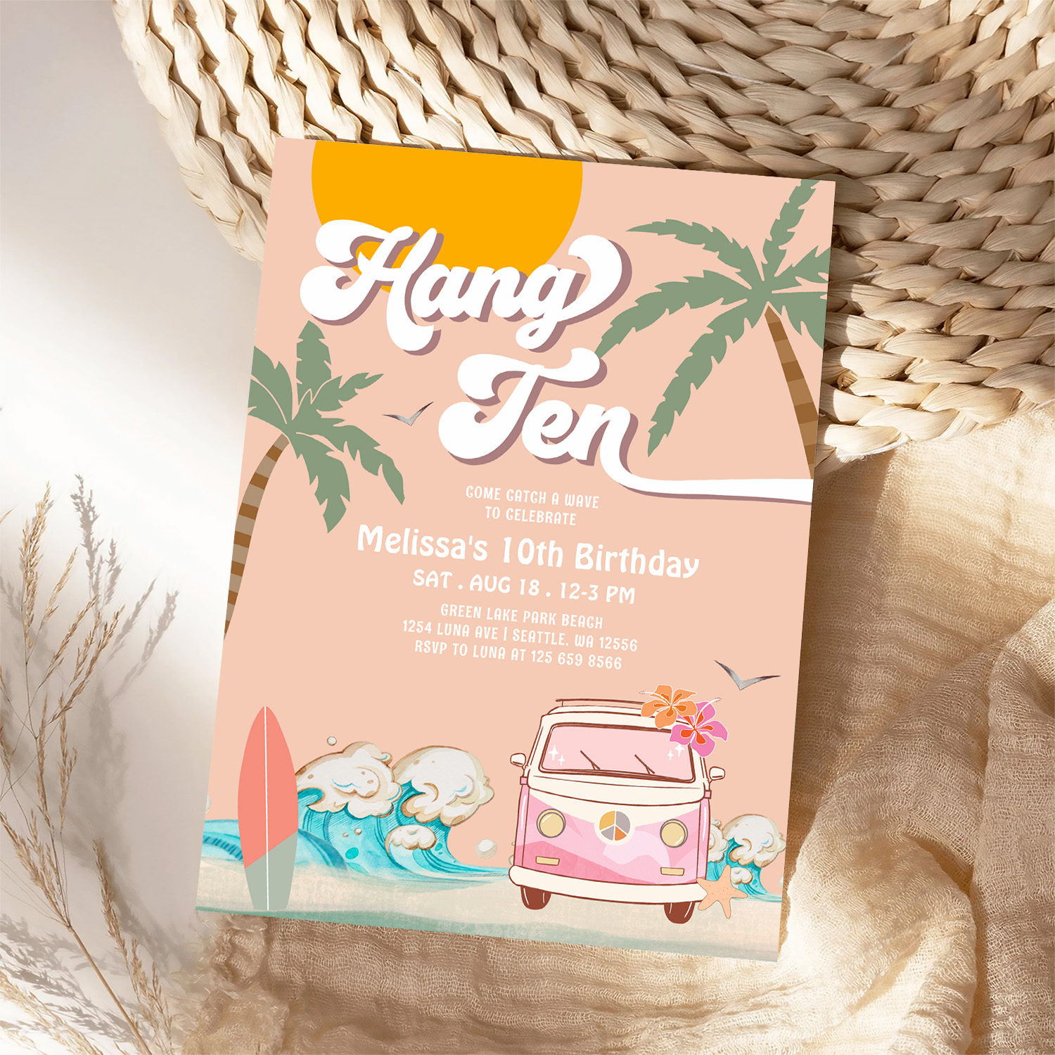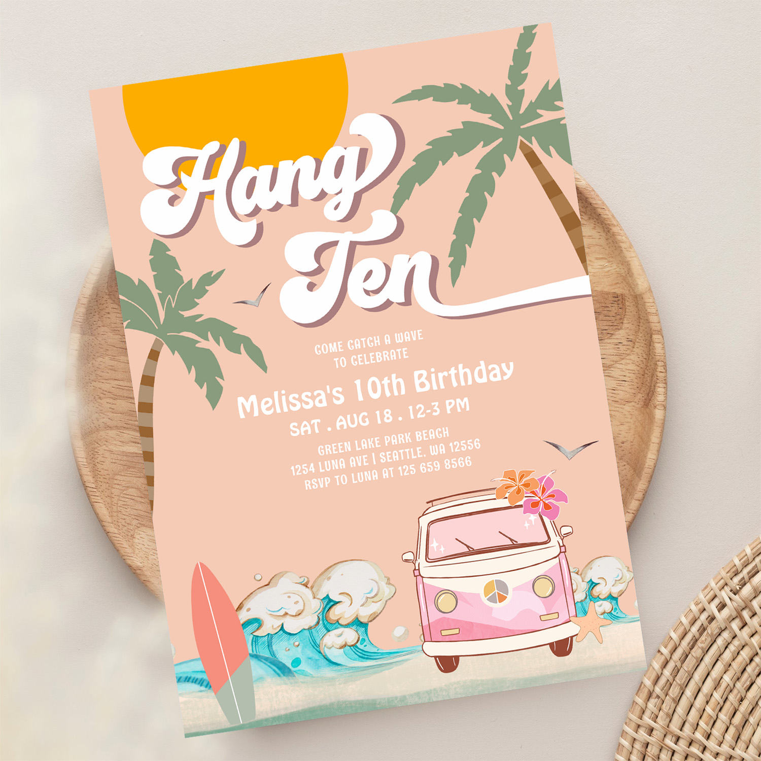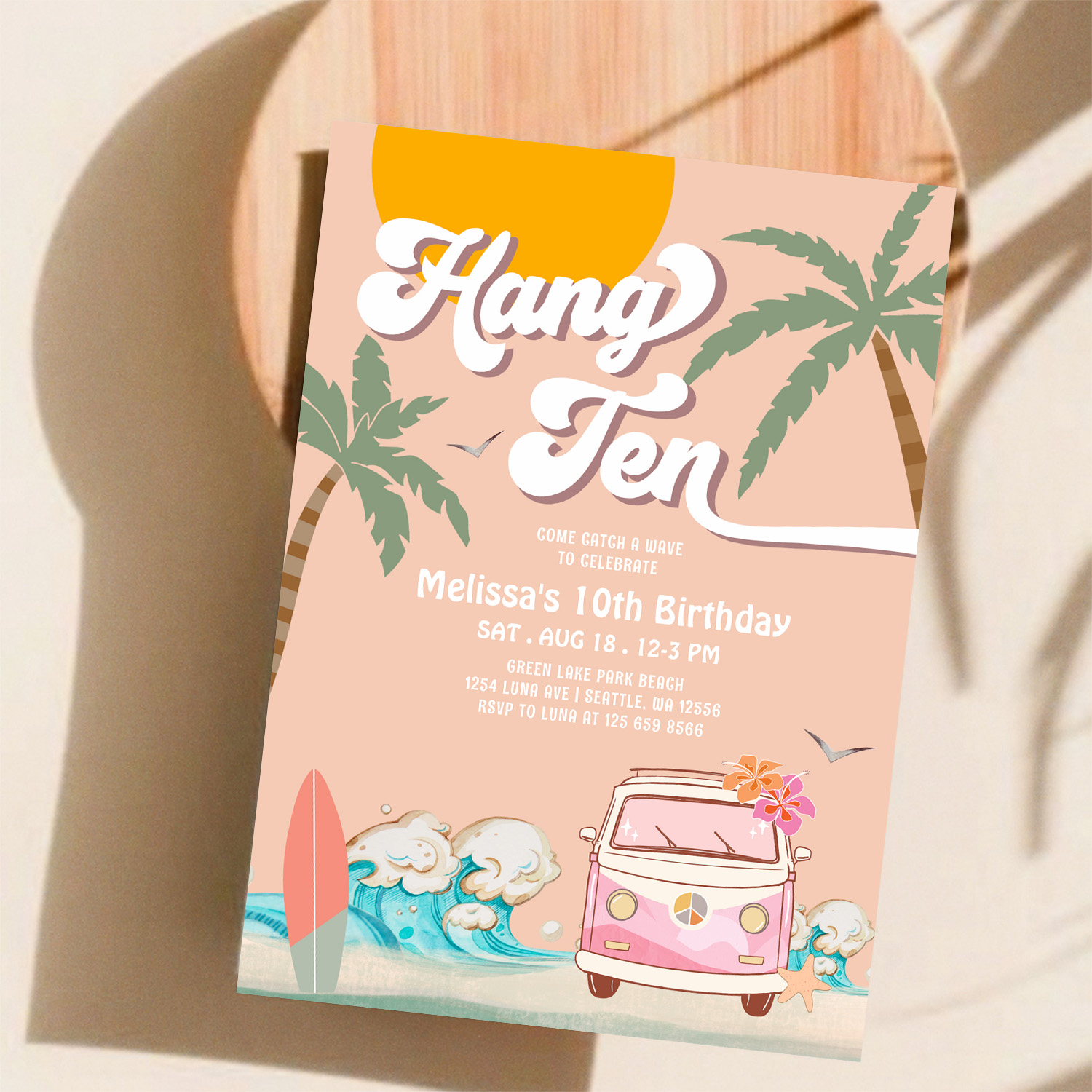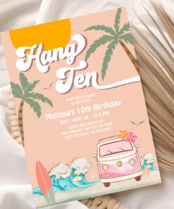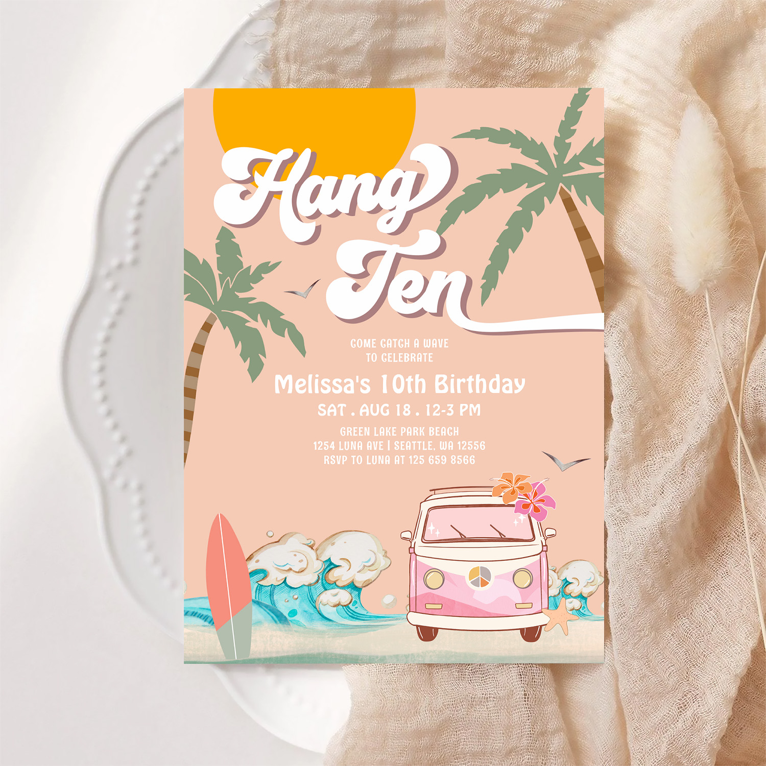 10th Birthday Hang Ten Surfing Birthday Party Invitation