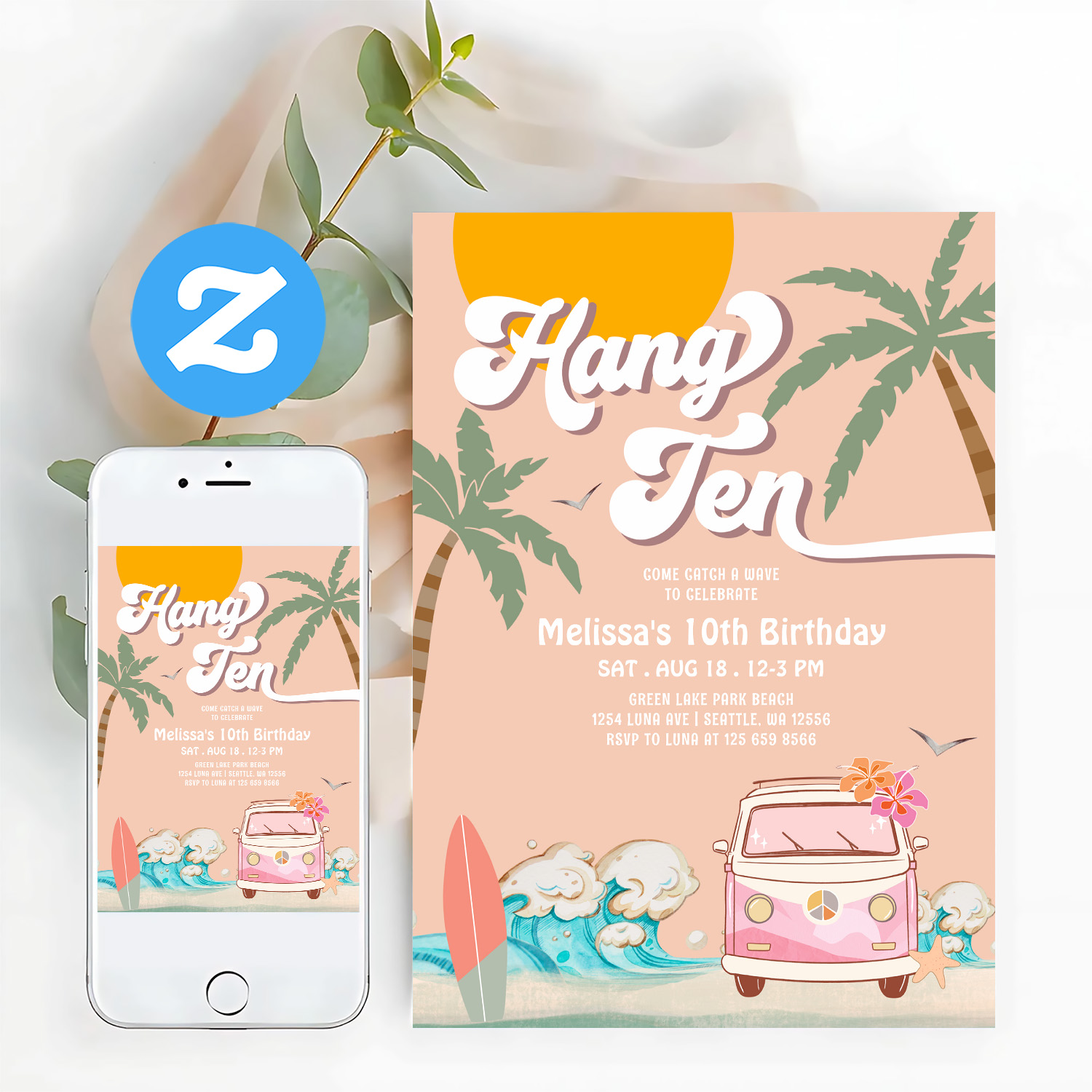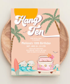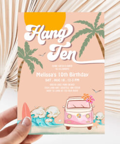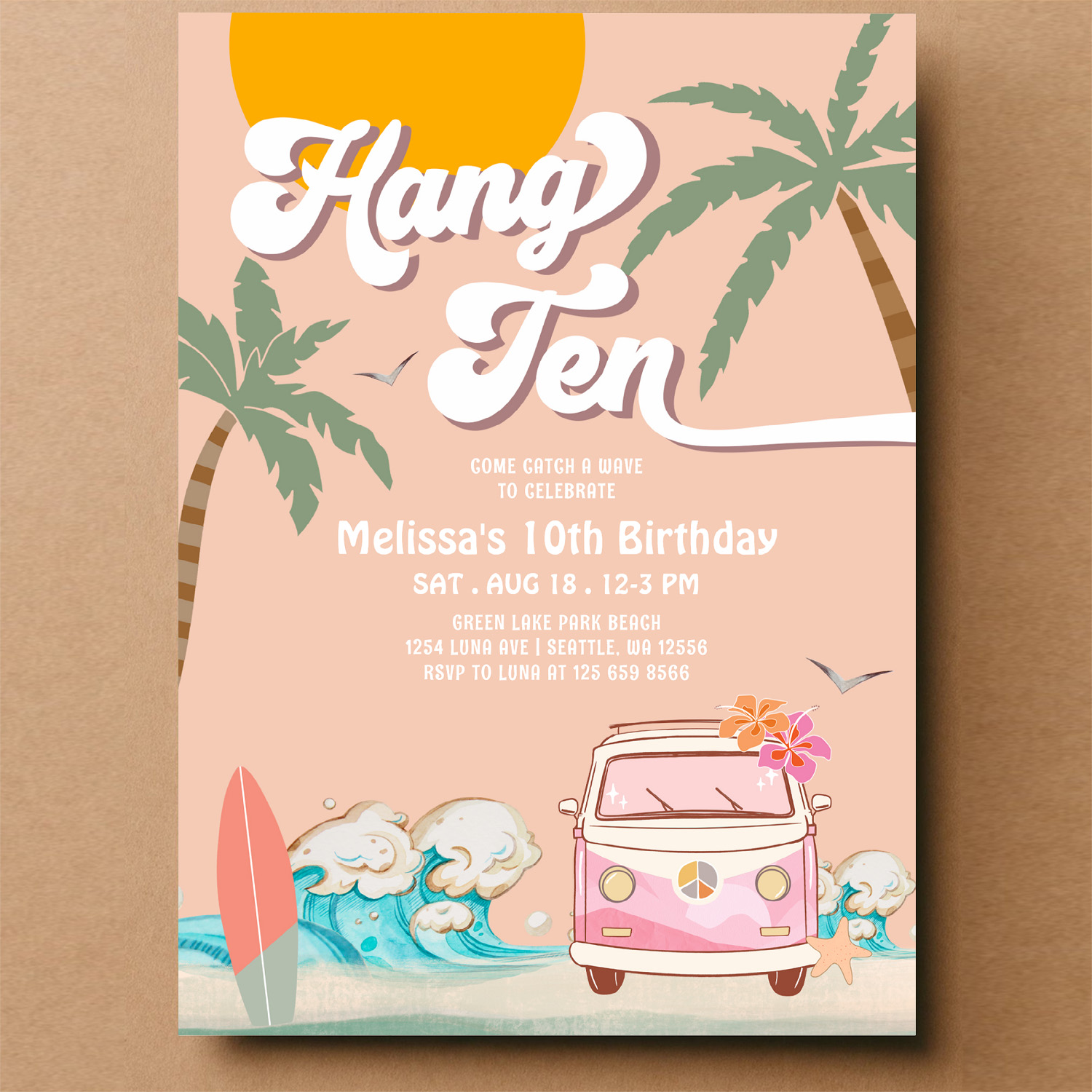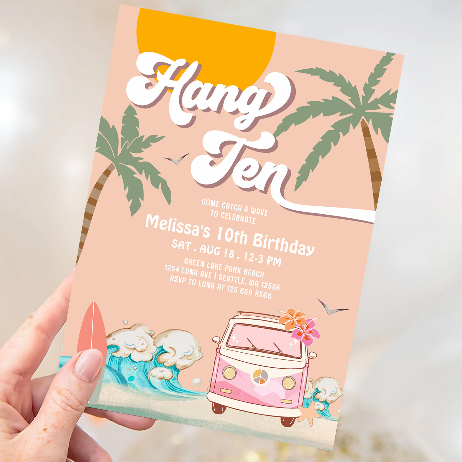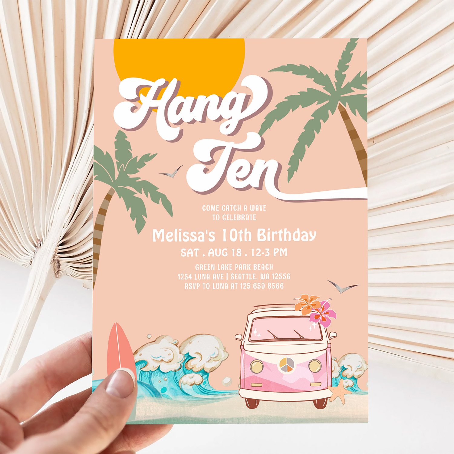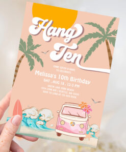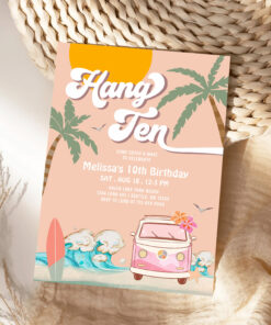 10th Birthday Hang Ten Surfing Birthday Party Invitation