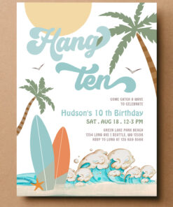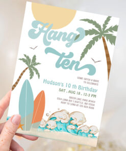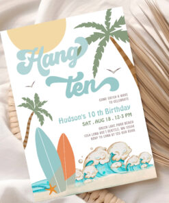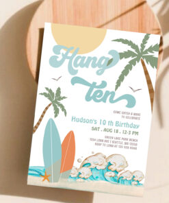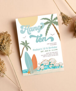 10th Boy Surf Surfing Birthday Beach Party Invitation