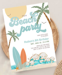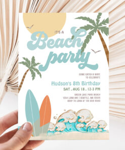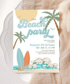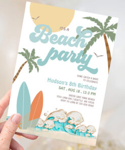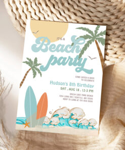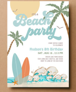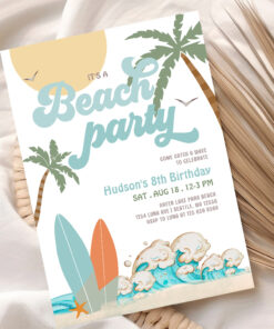 Any Age Boy Surfing Beach Party Birthday Party Invitation
