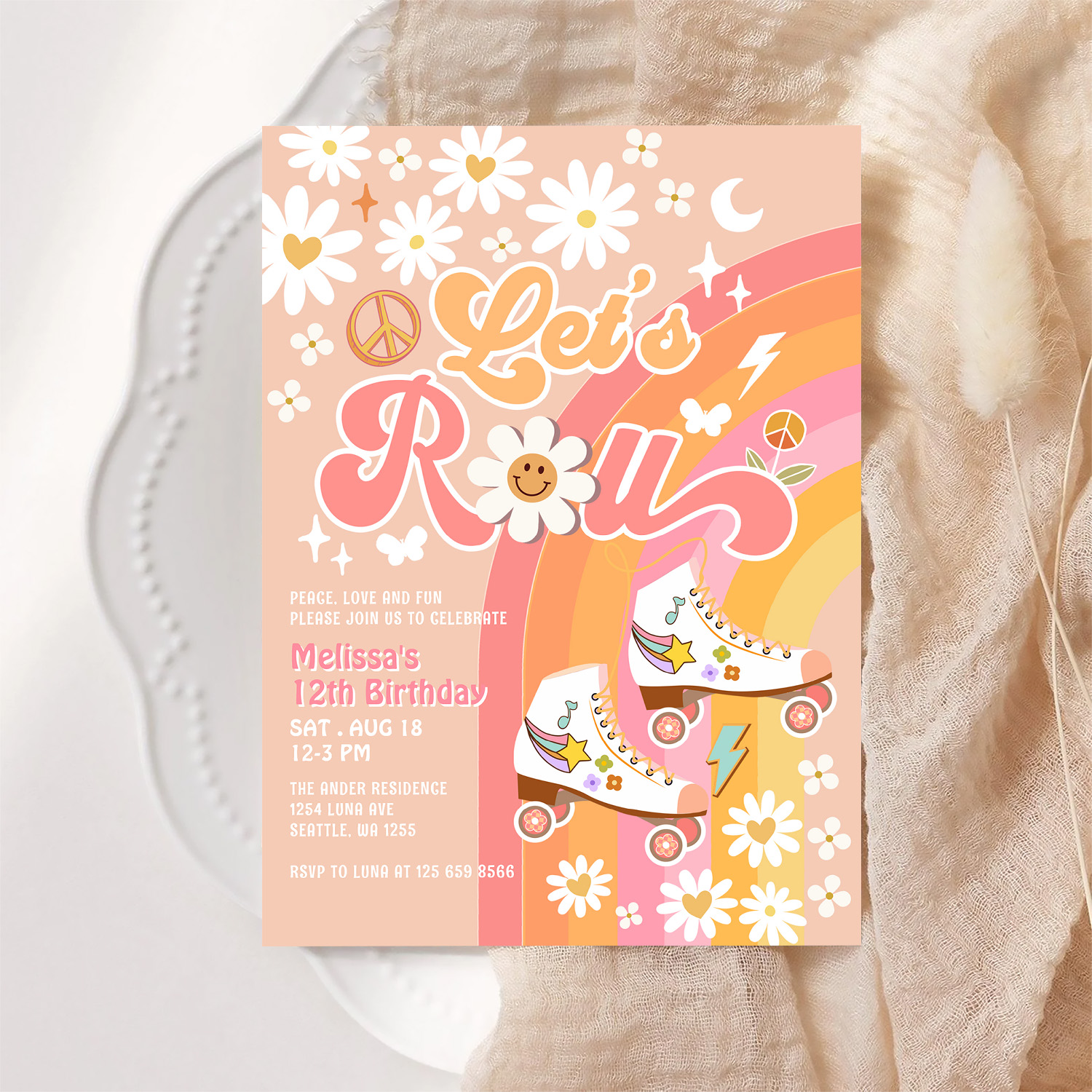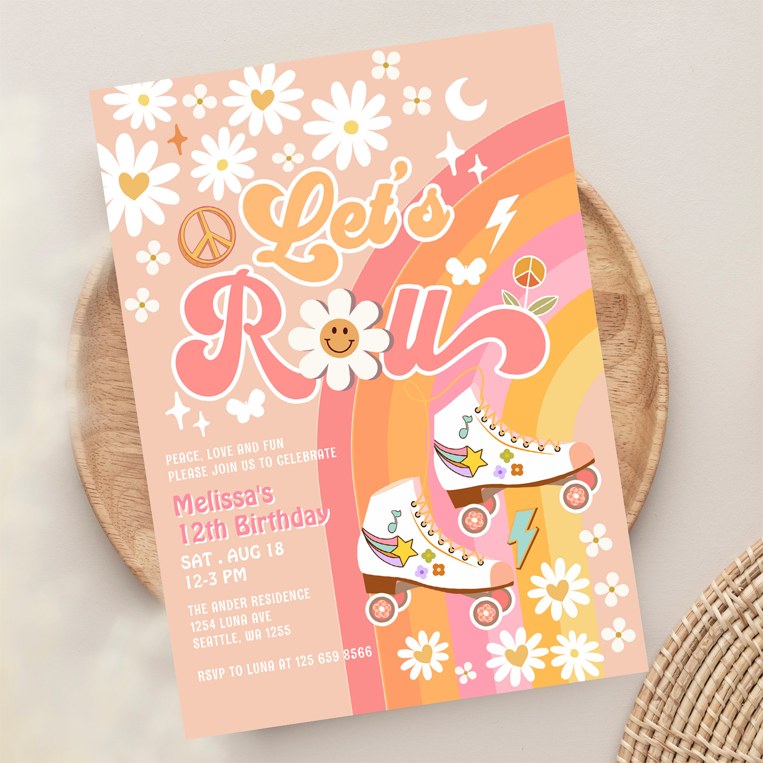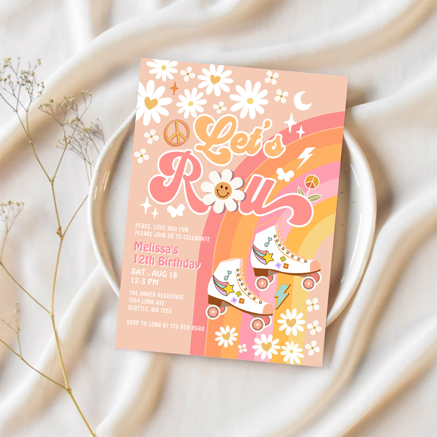 Any Age Lets Peach Roll Retro Groovy Birthday Invitation