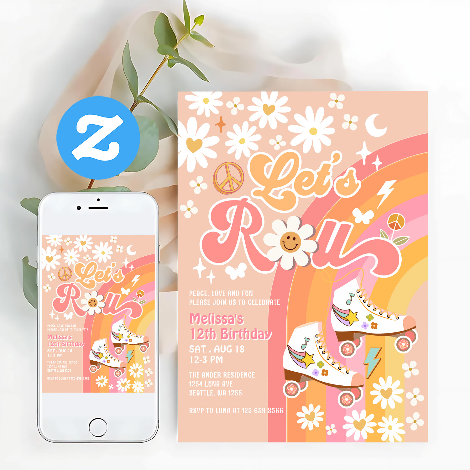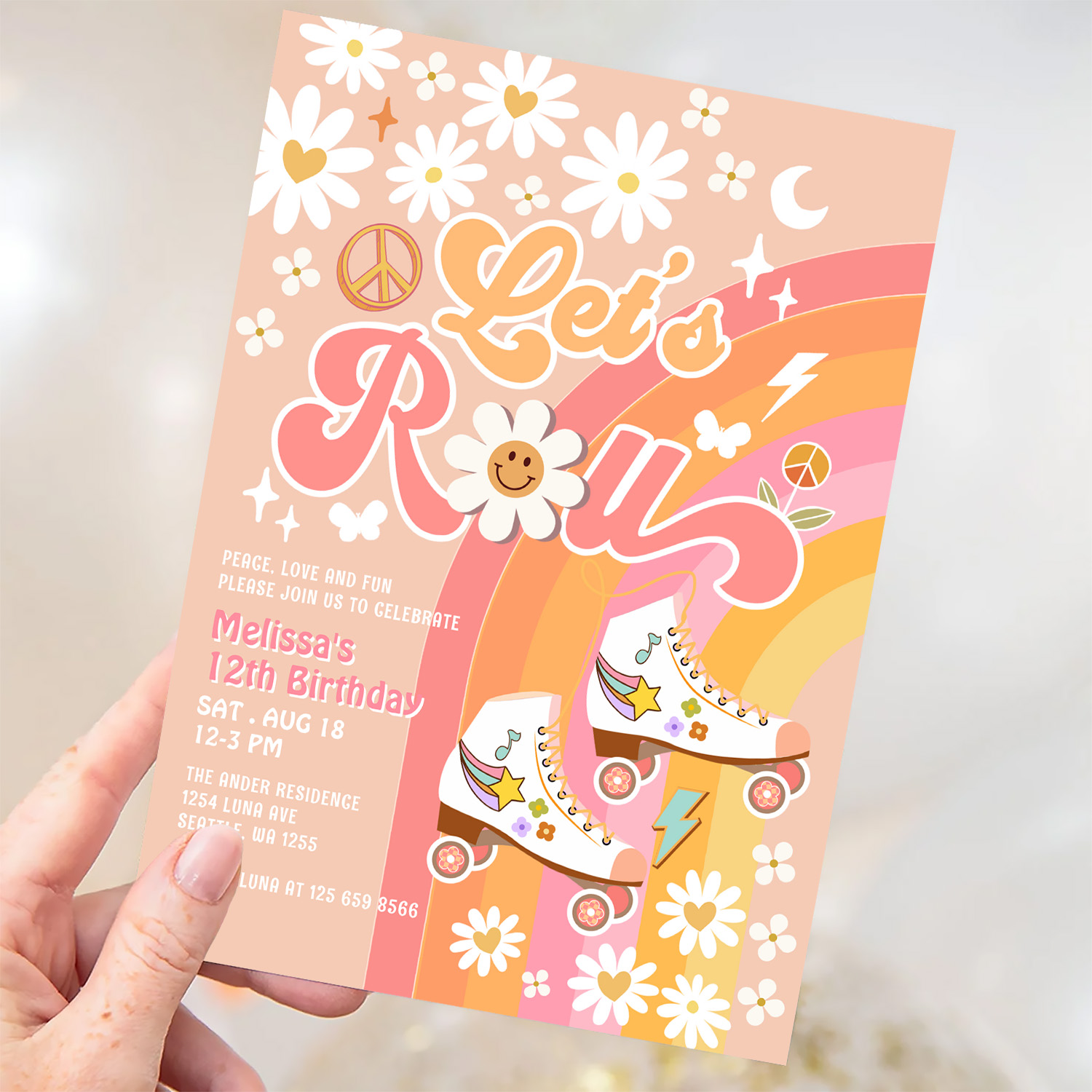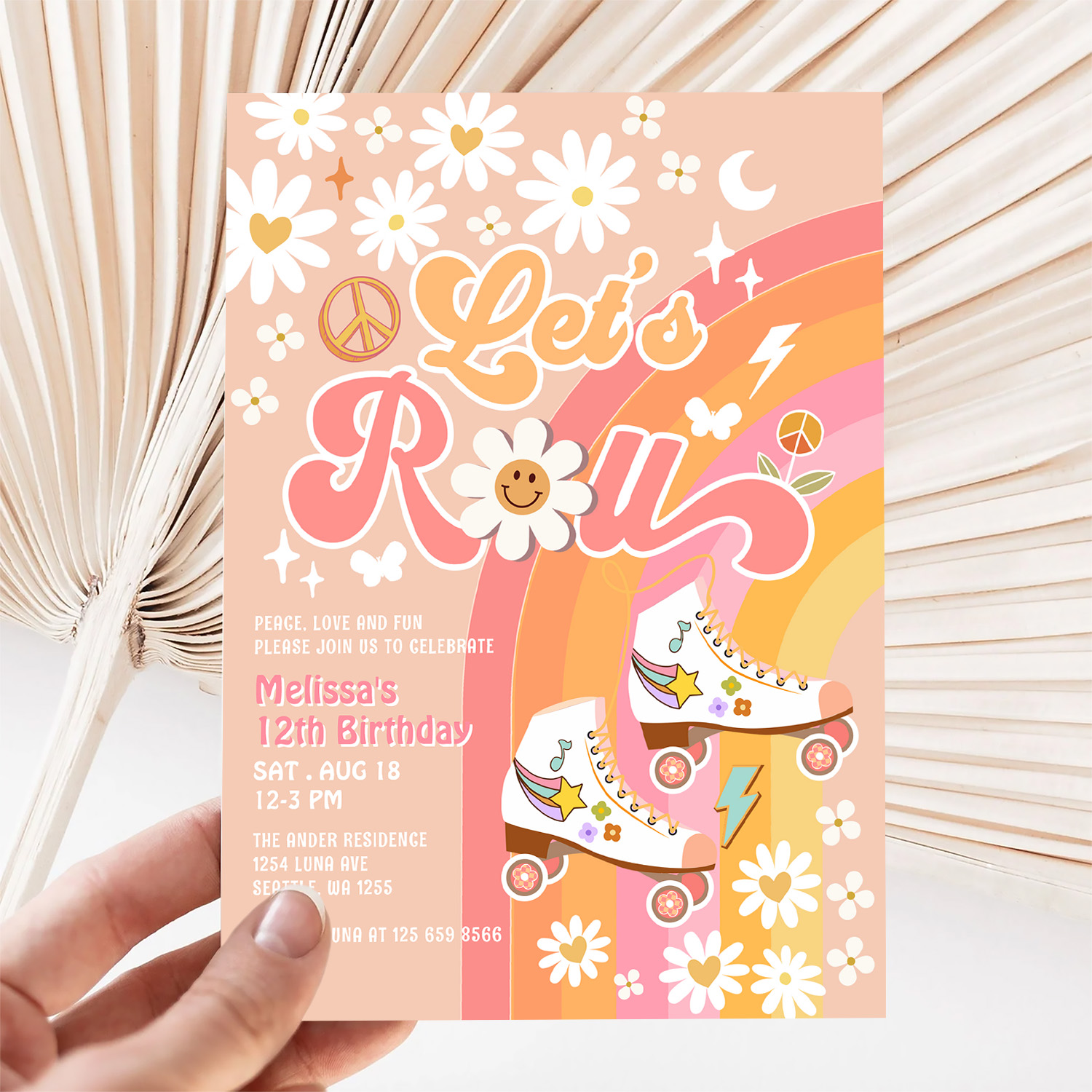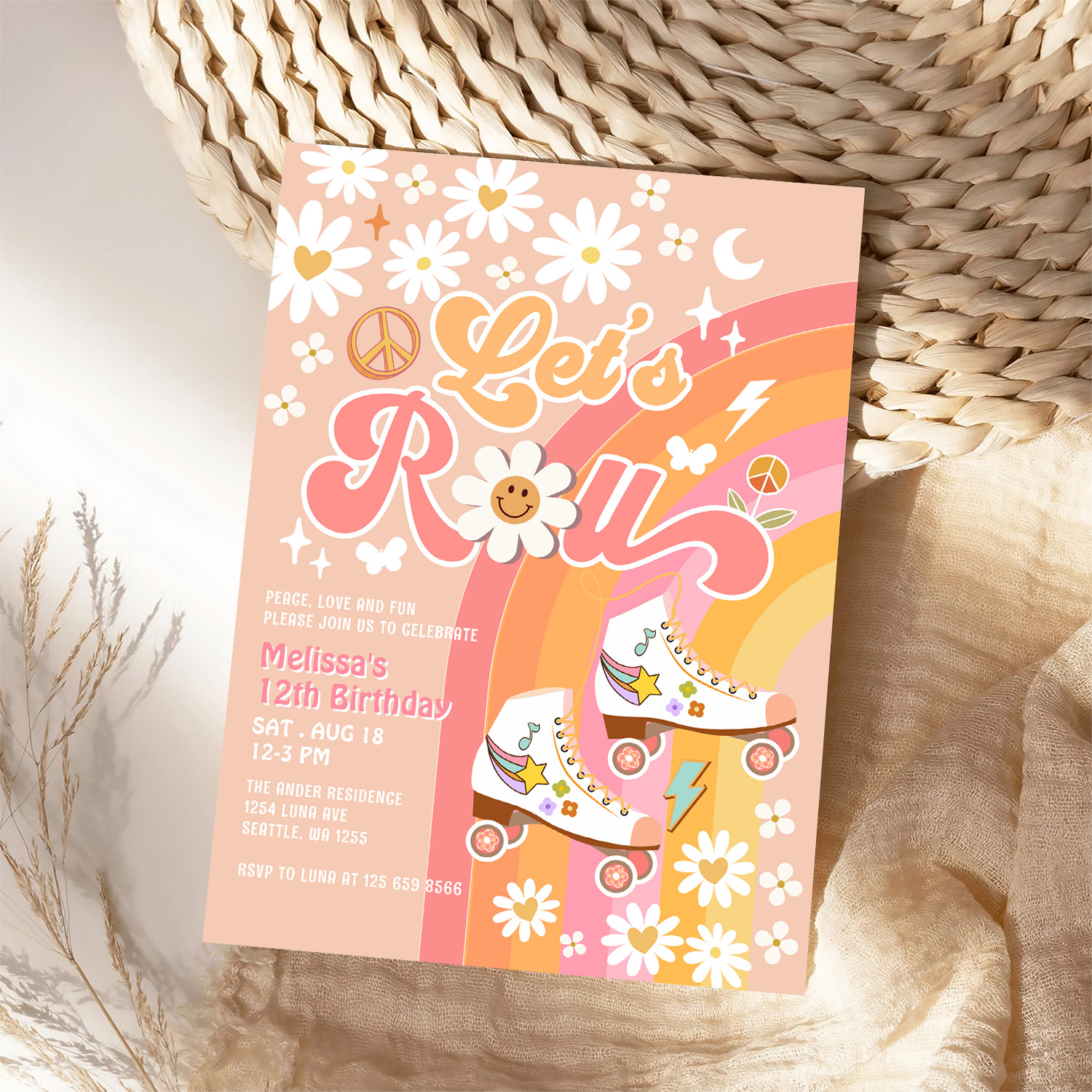 Any Age Lets Peach Roll Retro Groovy Birthday Invitation