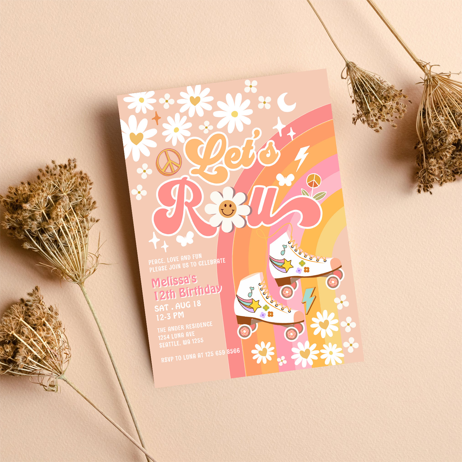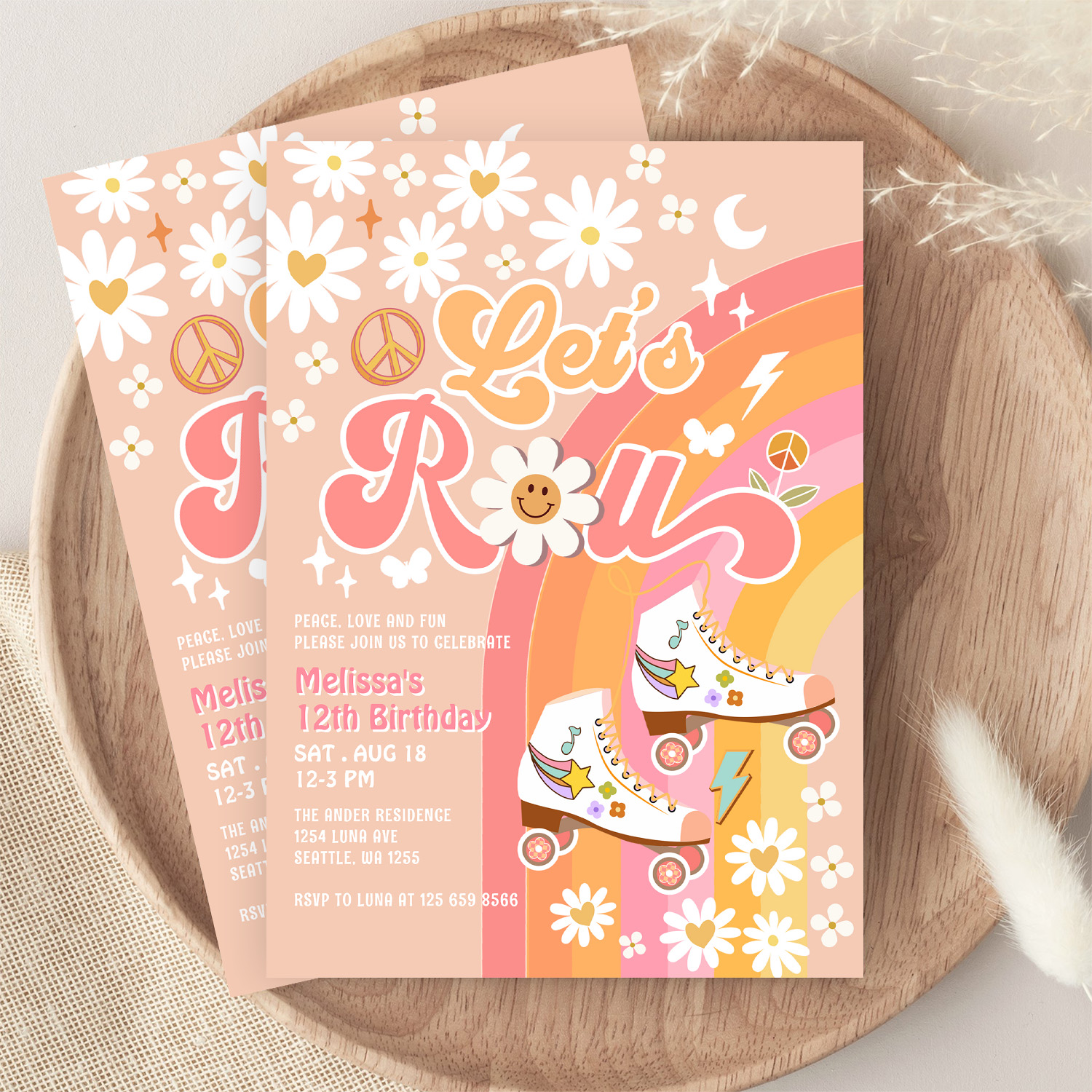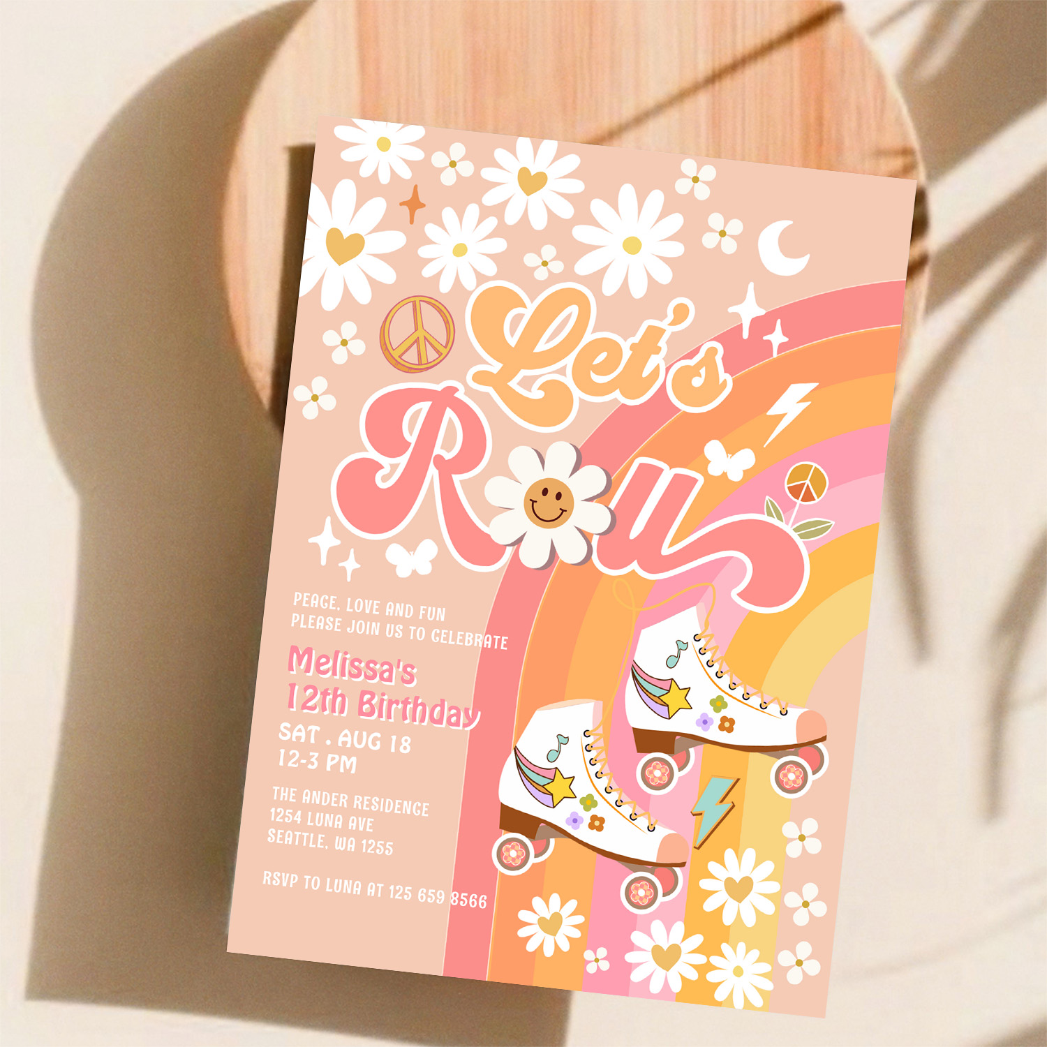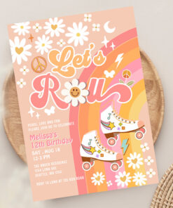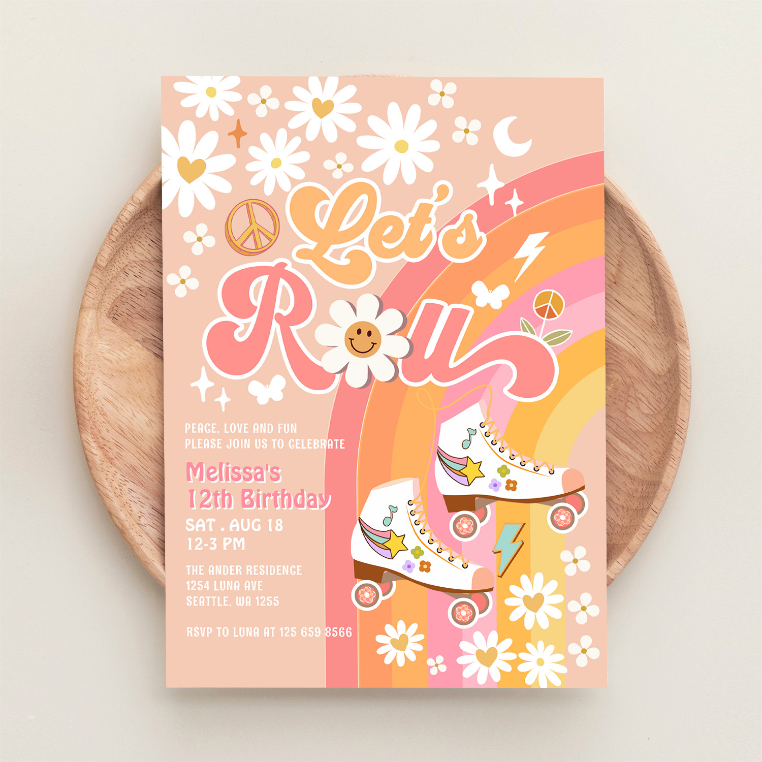 Any Age Lets Peach Roll Retro Groovy Birthday Invitation - Related products
