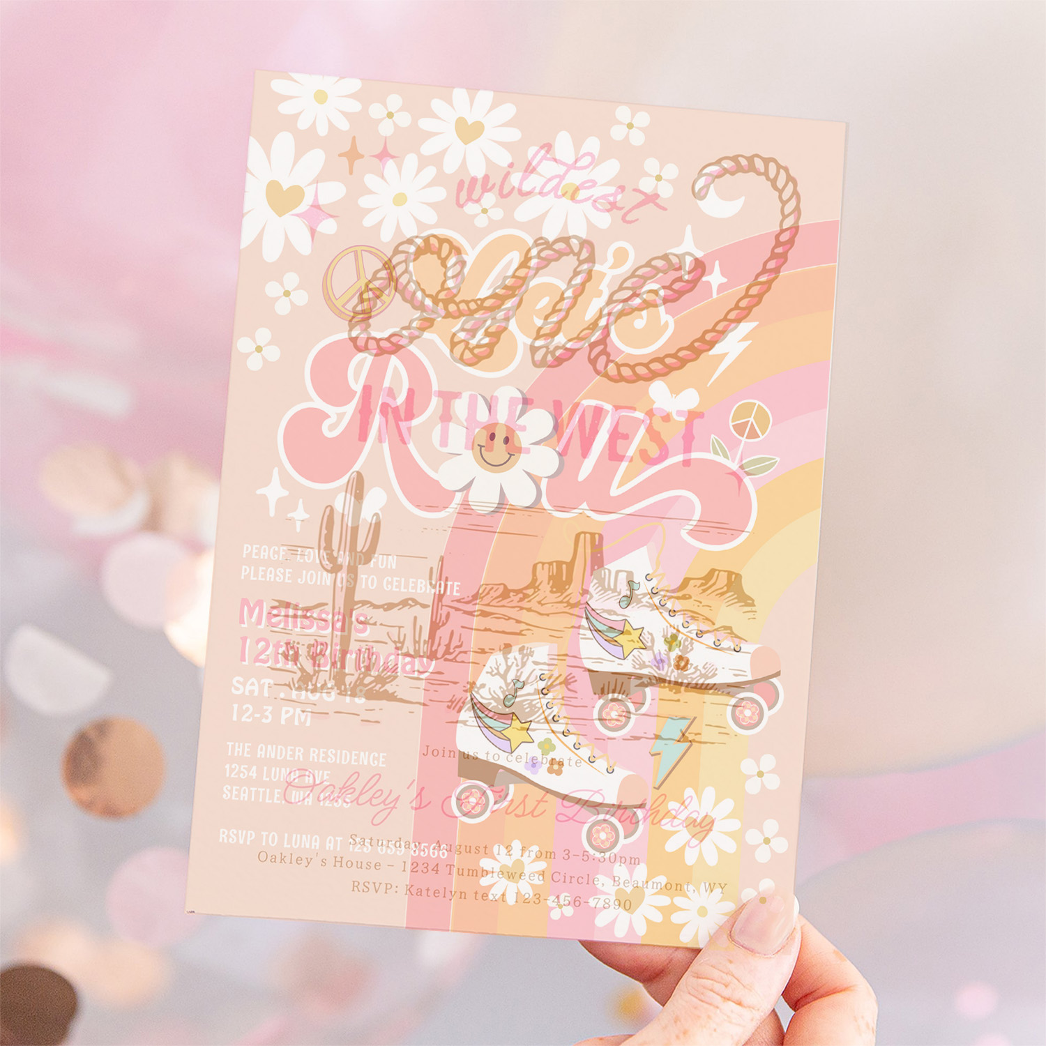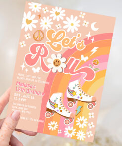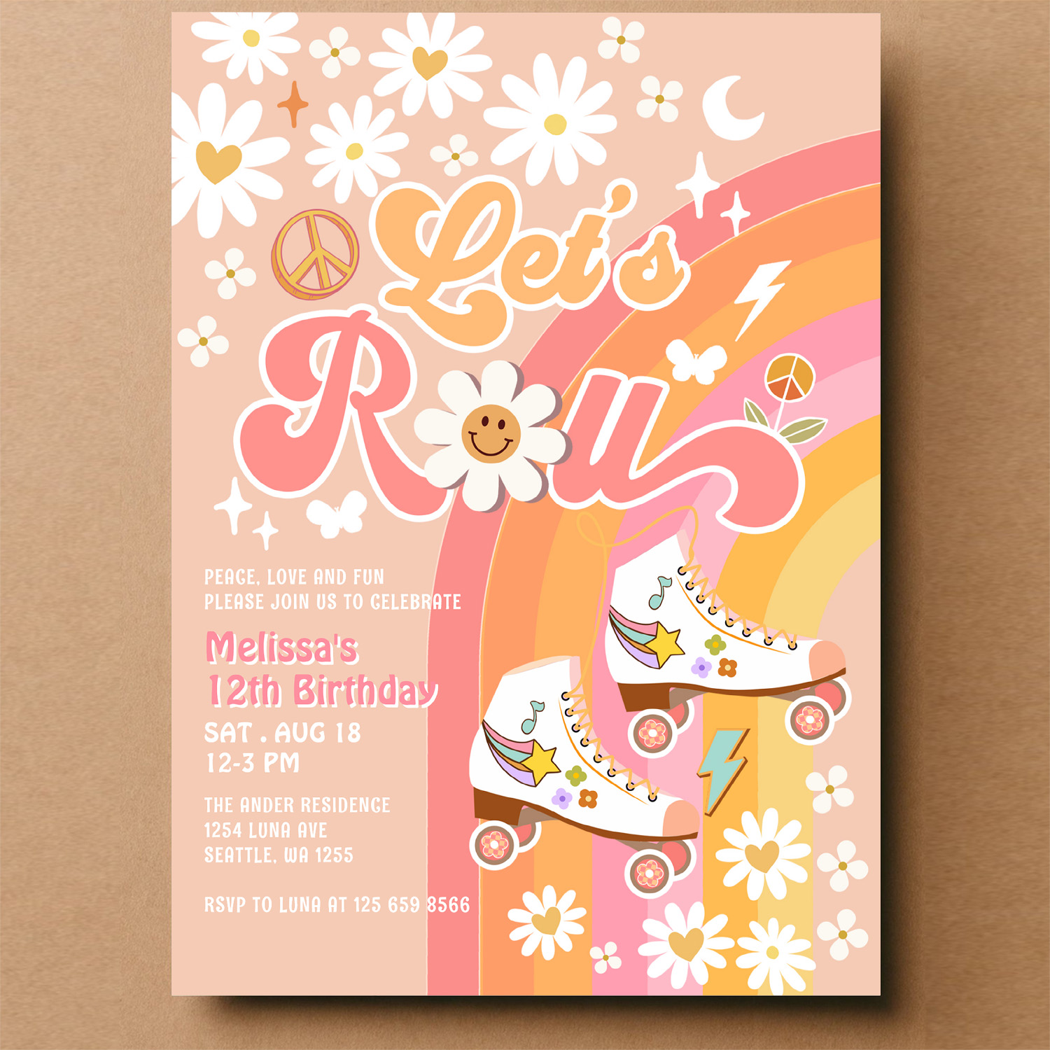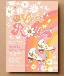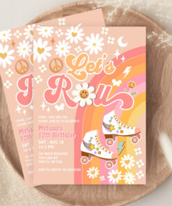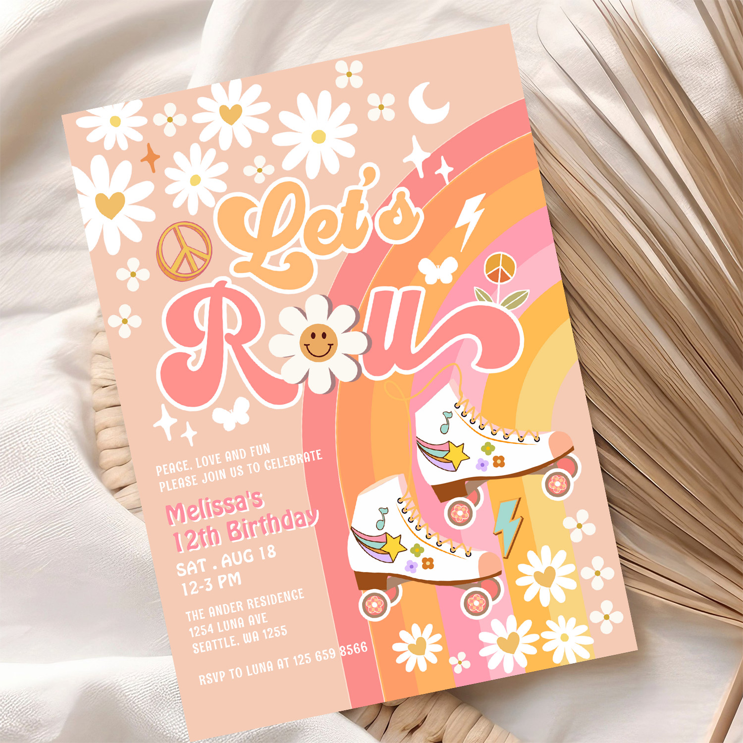 Any Age Lets Peach Roll Retro Groovy Birthday Invitation - Related products