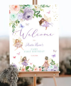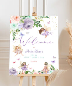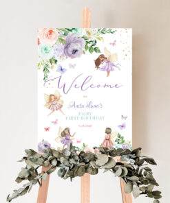 Any Age Purple Pink Fairy Wildflower Welcome Sign