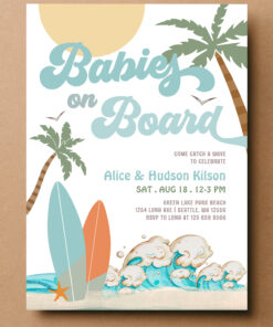 Babies On Board Sprinkle Surf Surfing Baby Shower Invitation - Related products