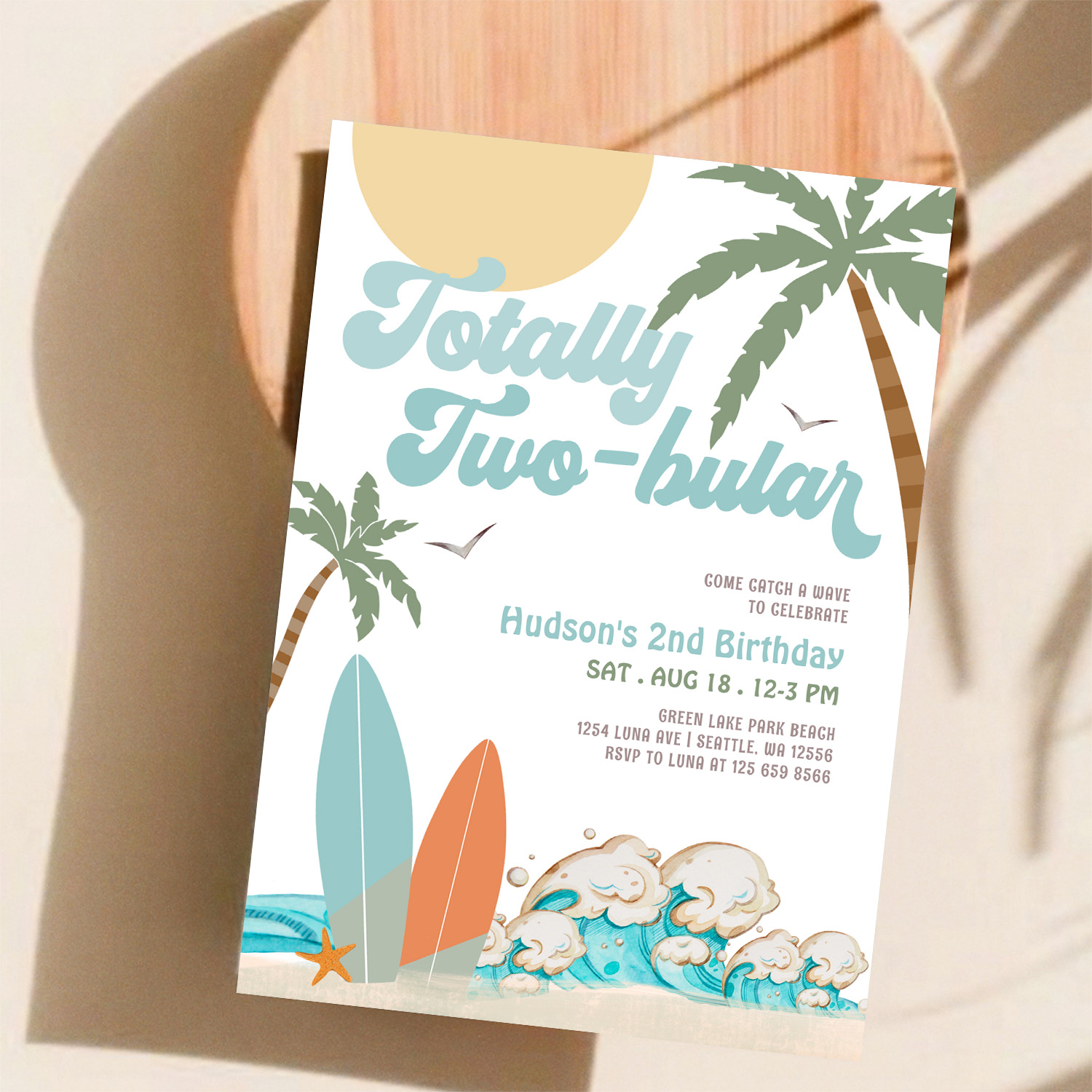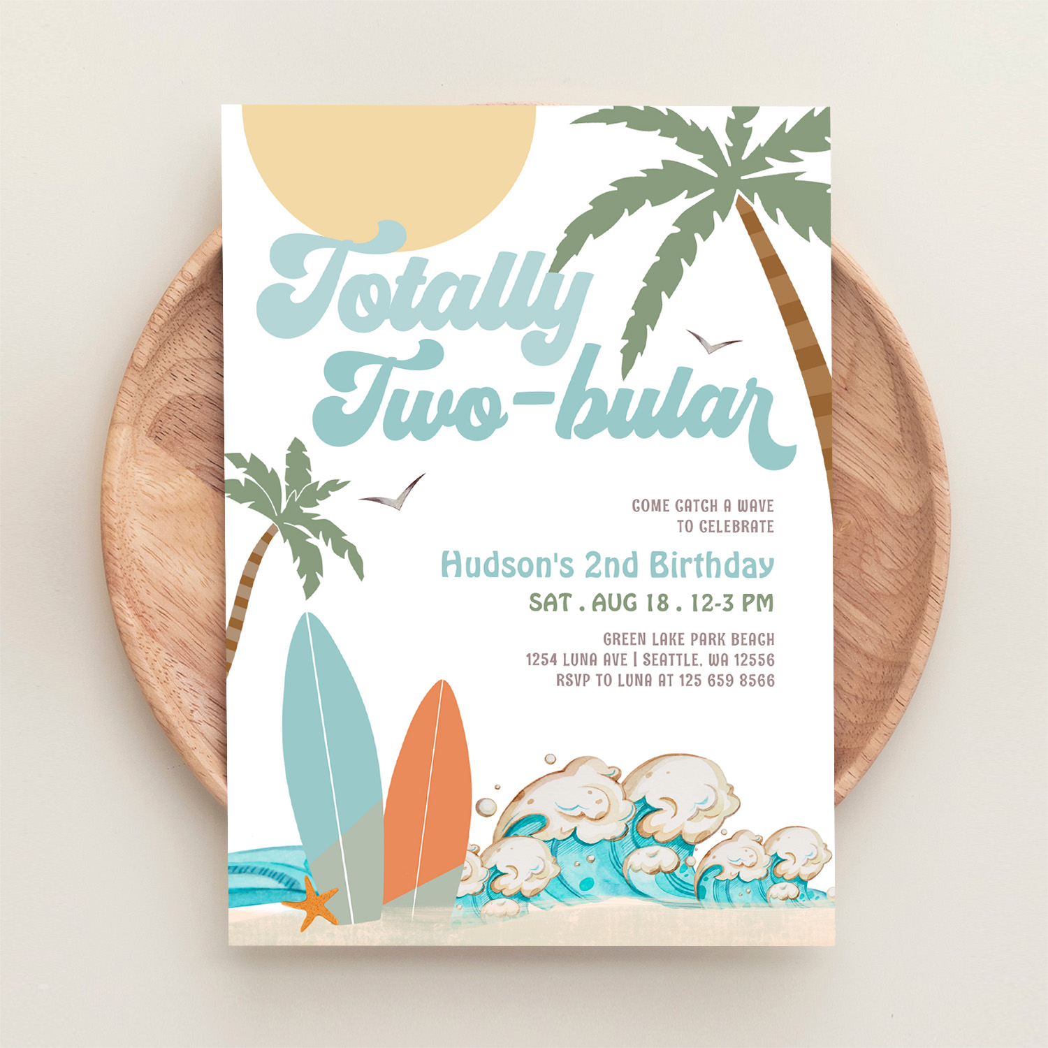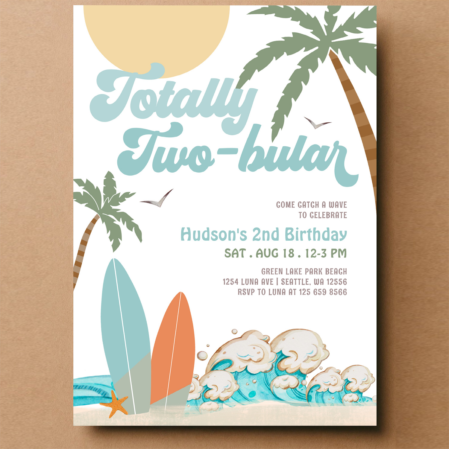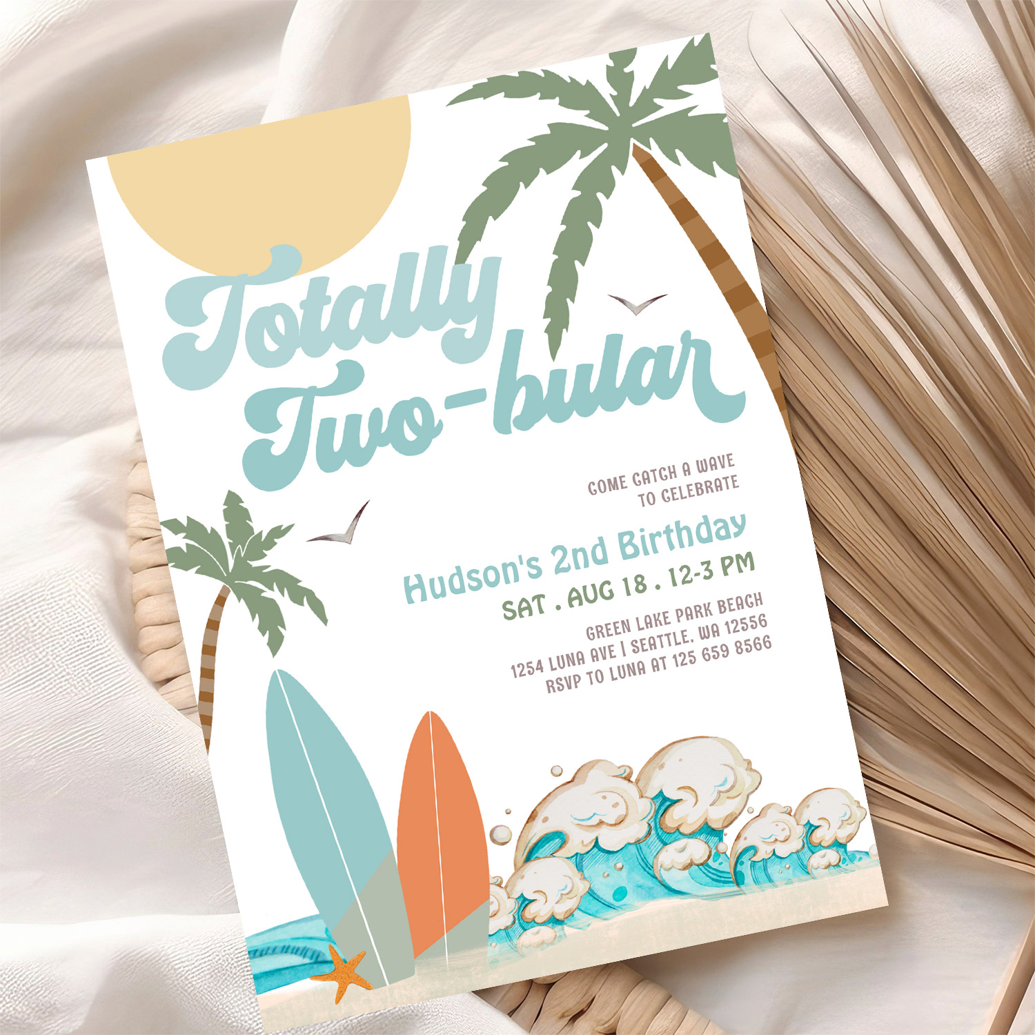 Boy Surf Surfing 2nd Birthday Totally Two Bular Invitation