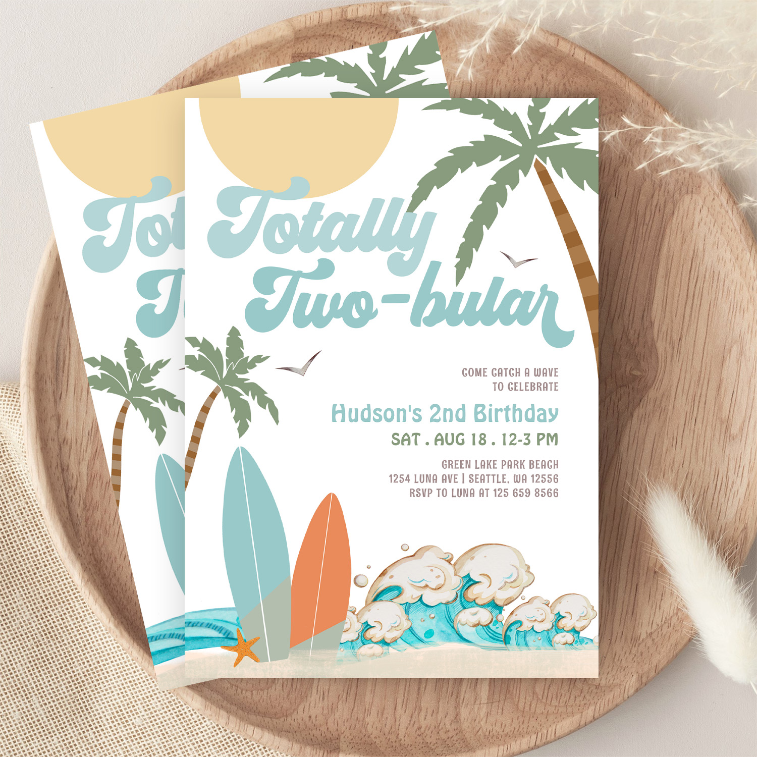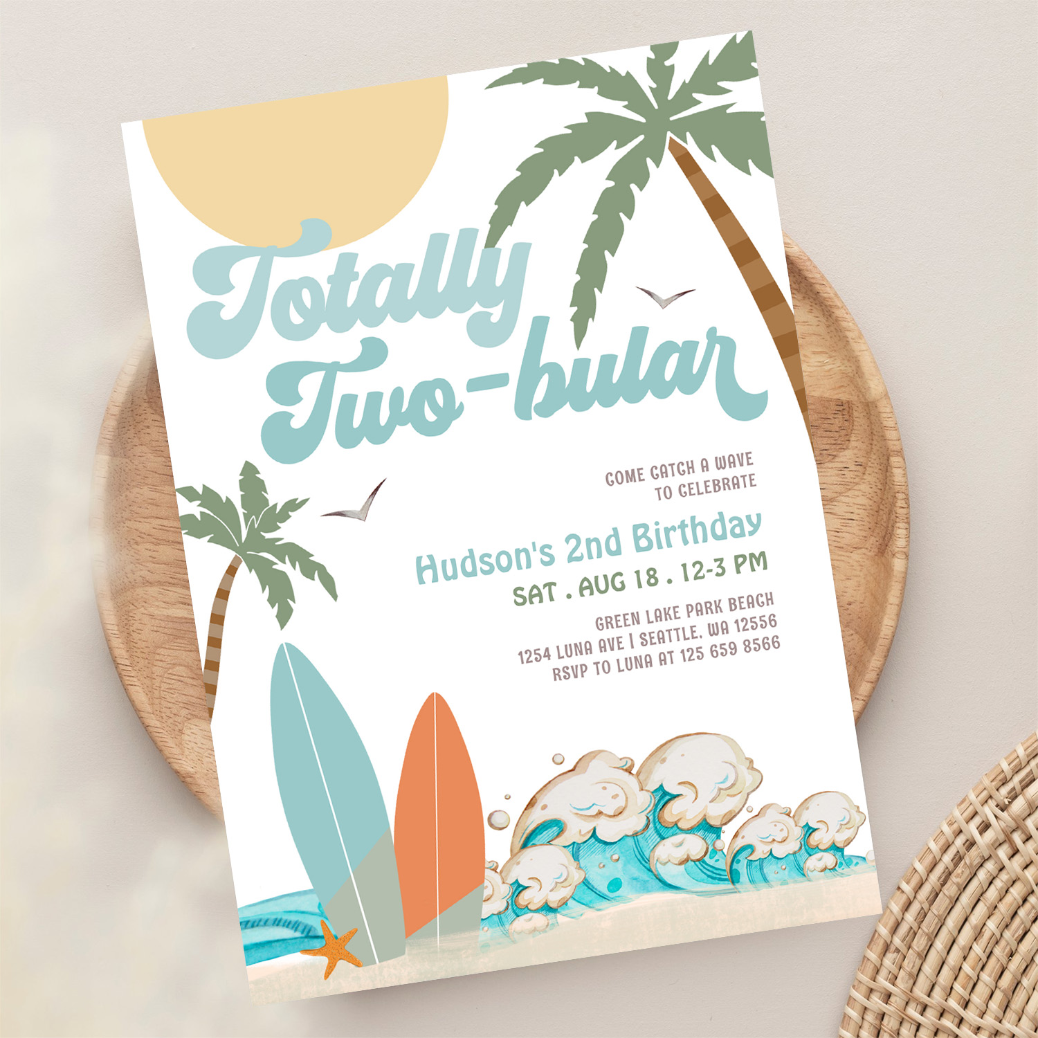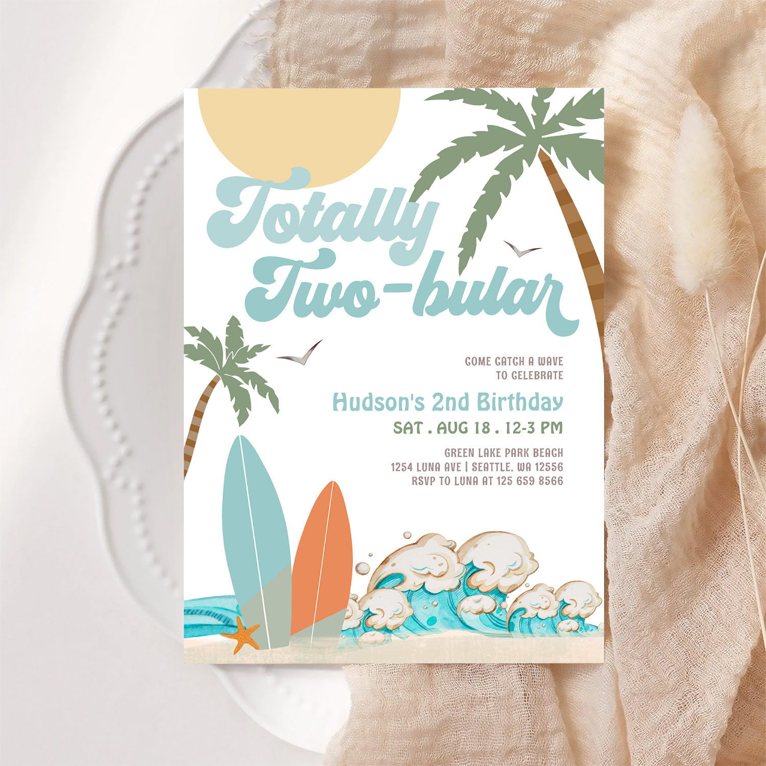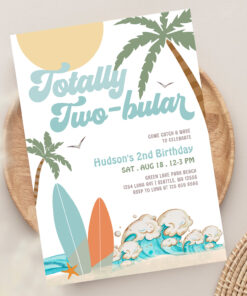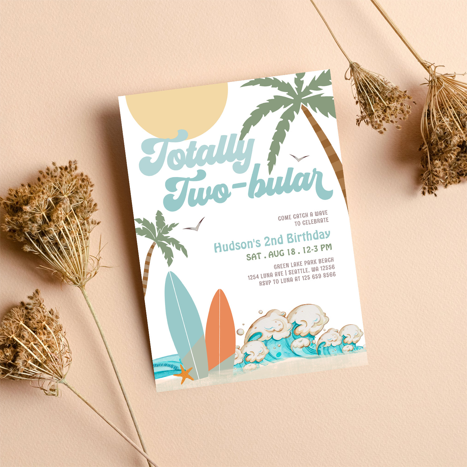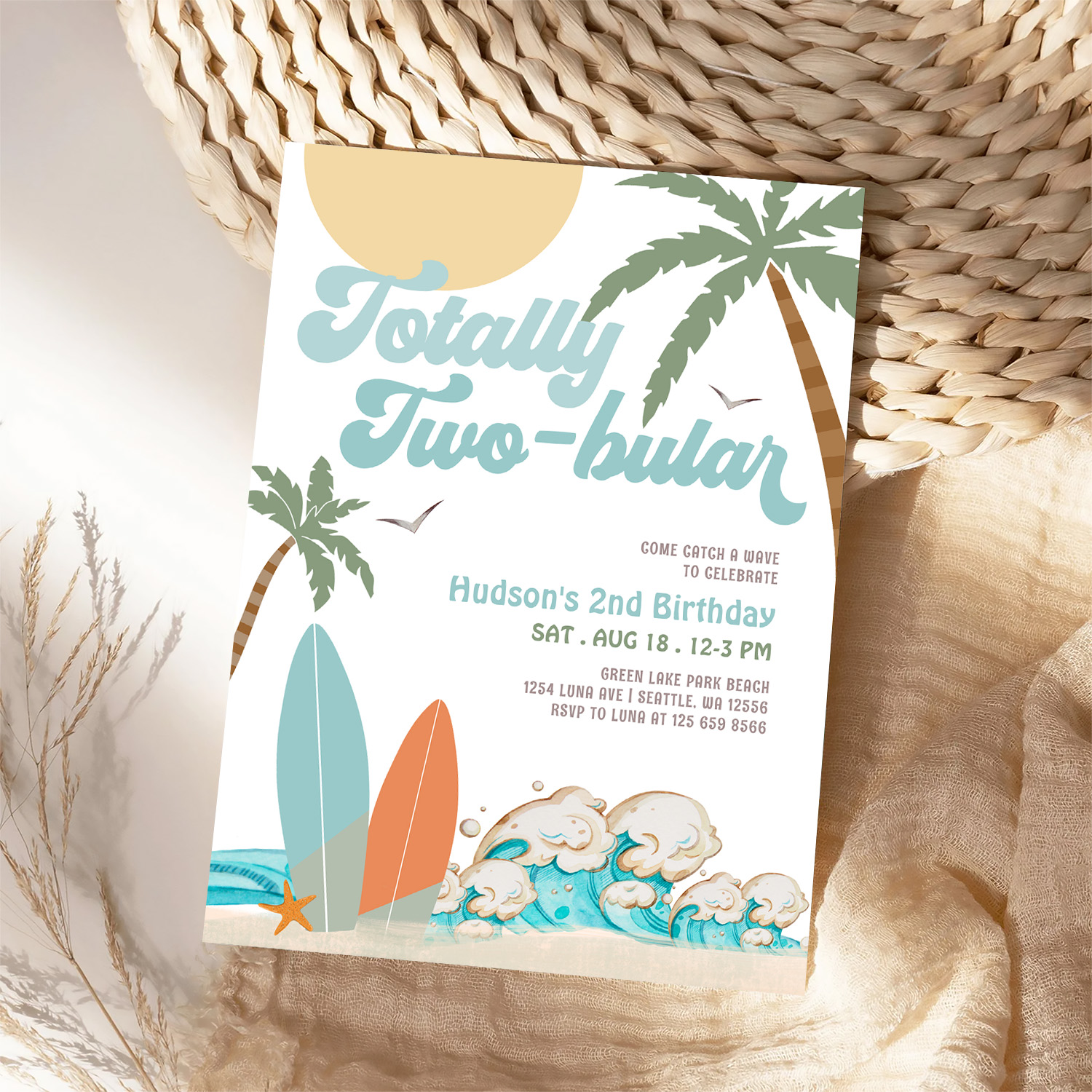 Boy Surf Surfing 2nd Birthday Totally Two Bular Invitation