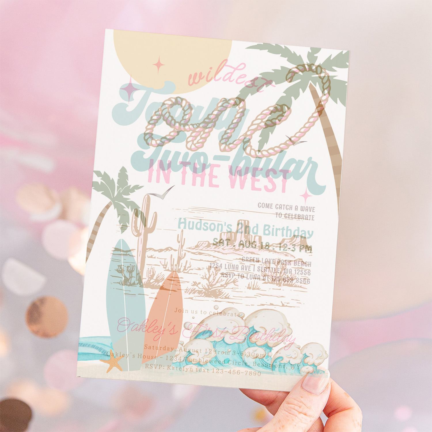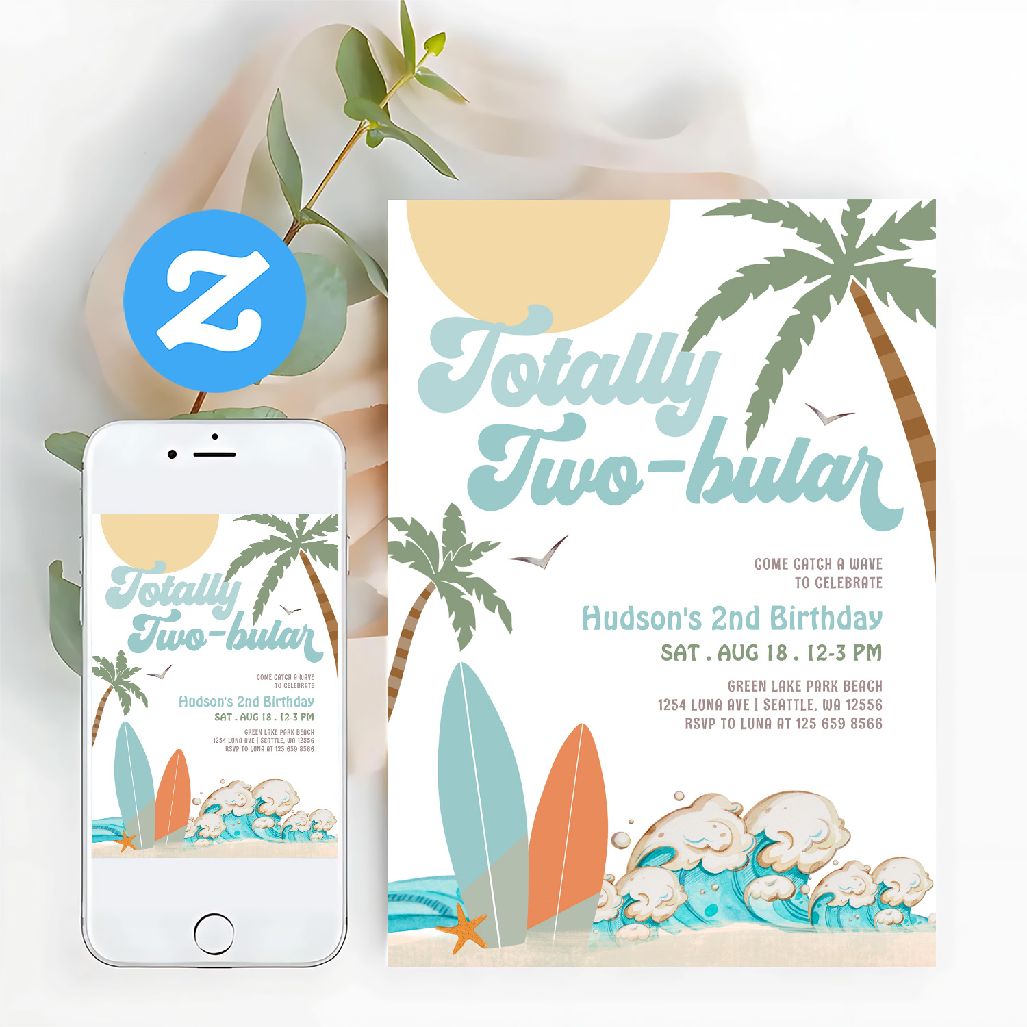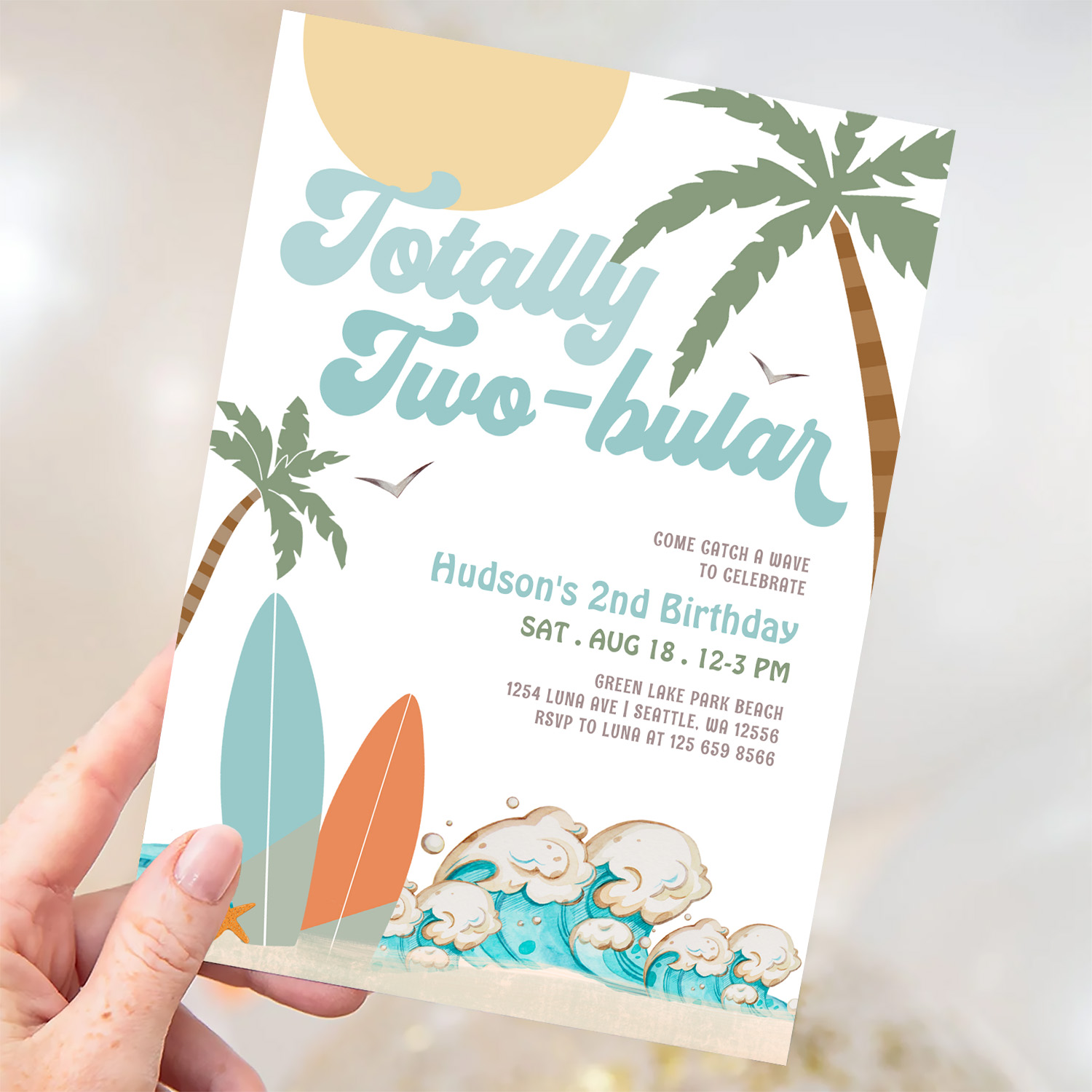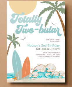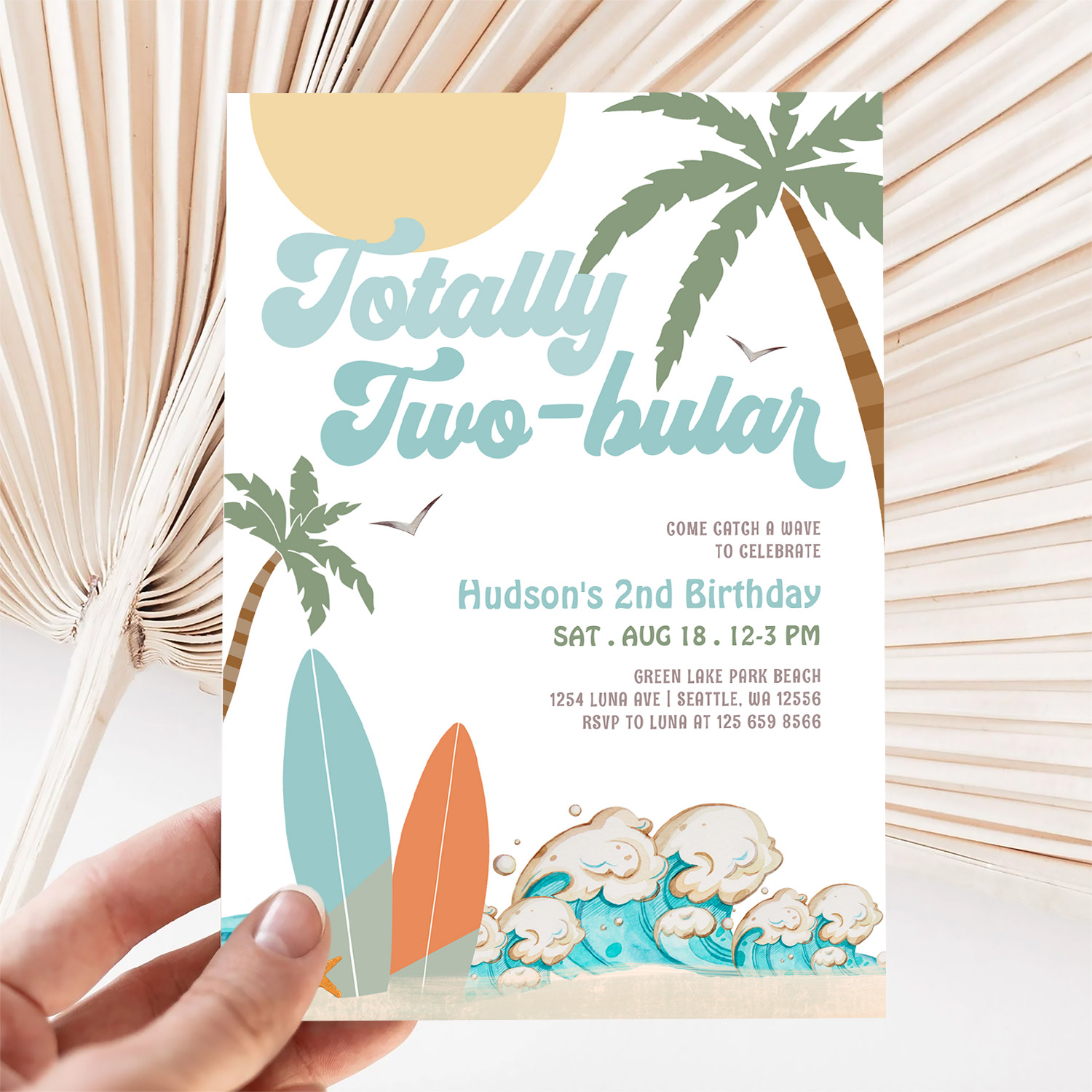 Boy Surf Surfing 2nd Birthday Totally Two Bular Invitation