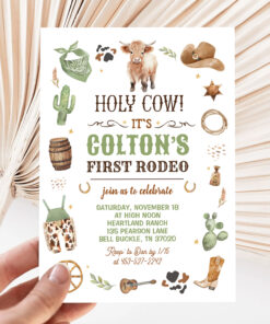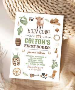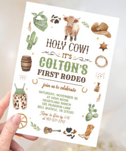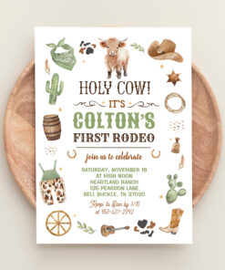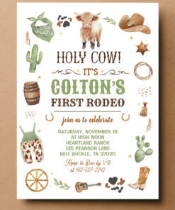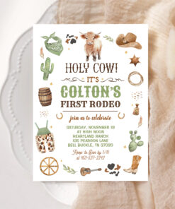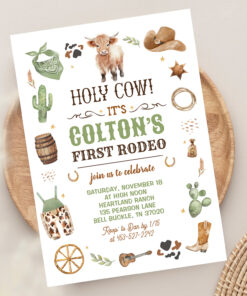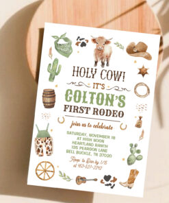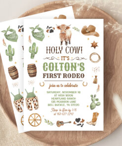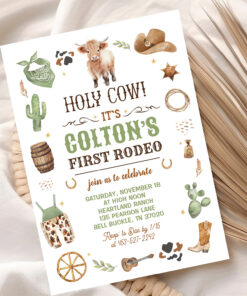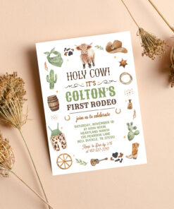 Cowboy 1st Rodeo Highland Cow Theme Birthday Party Invitation - Related products