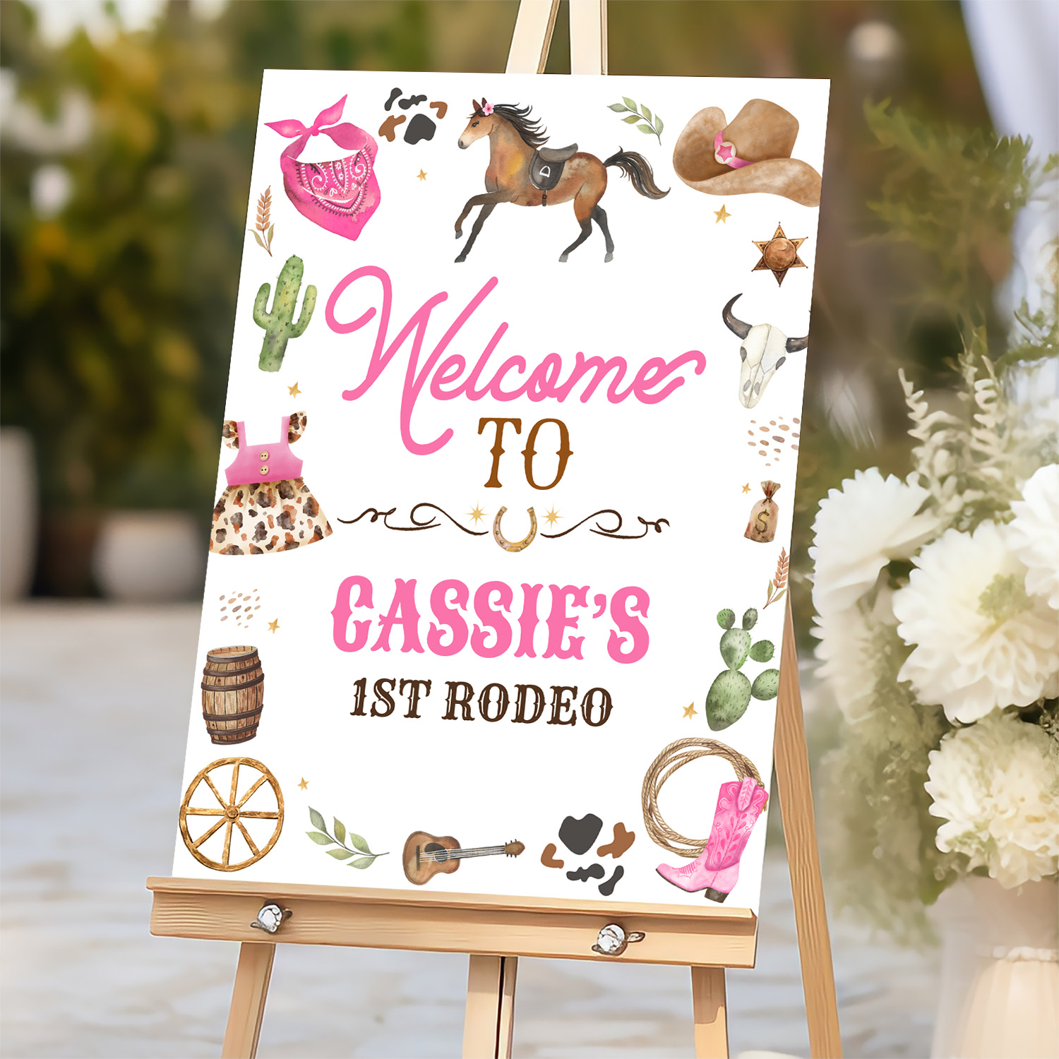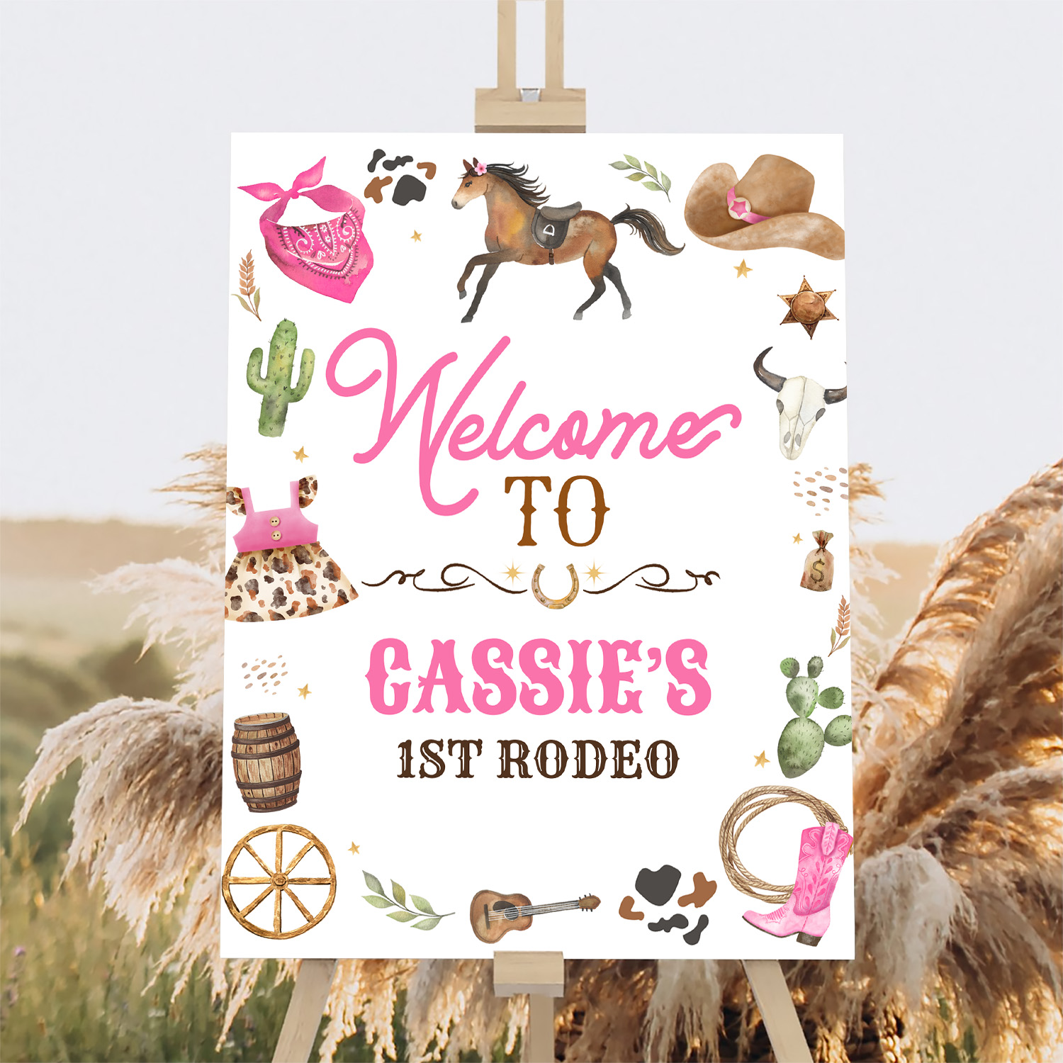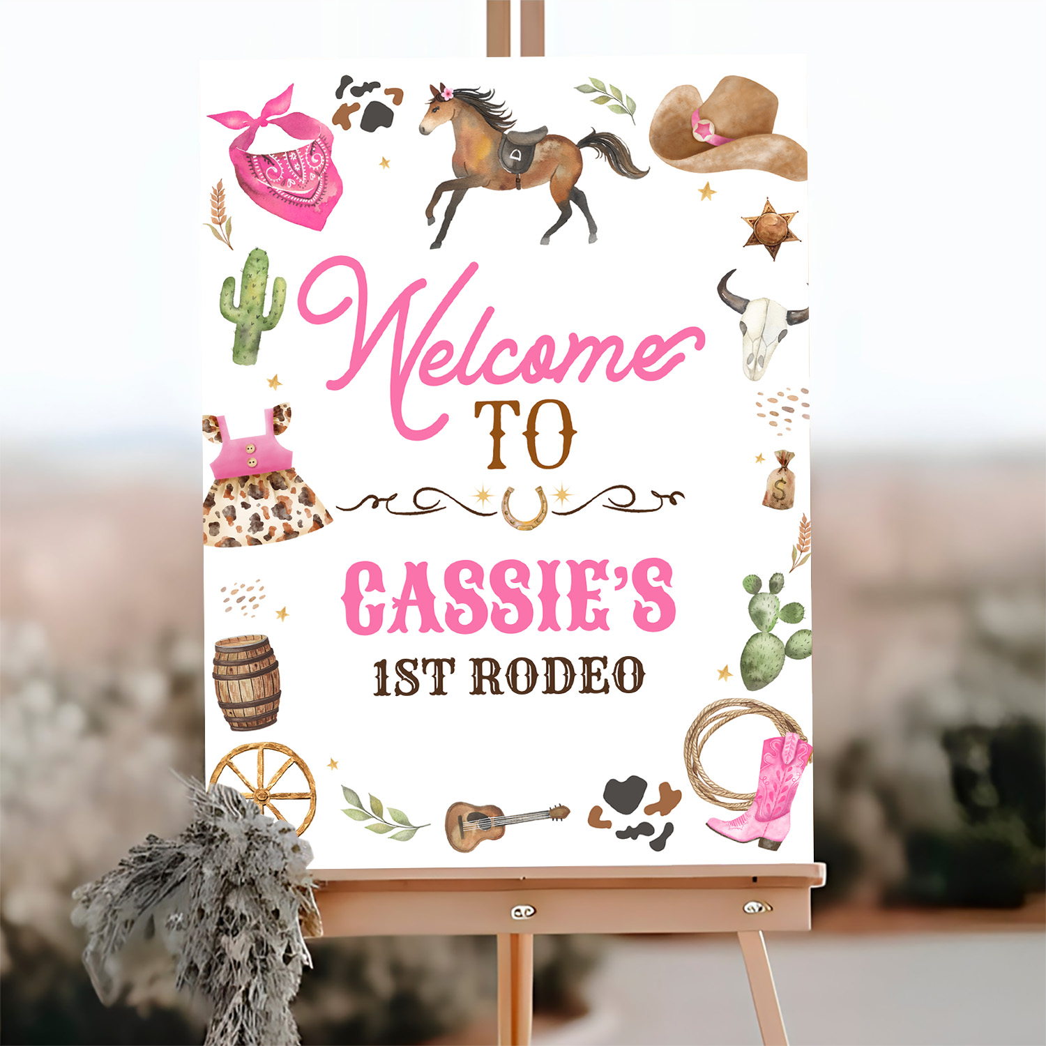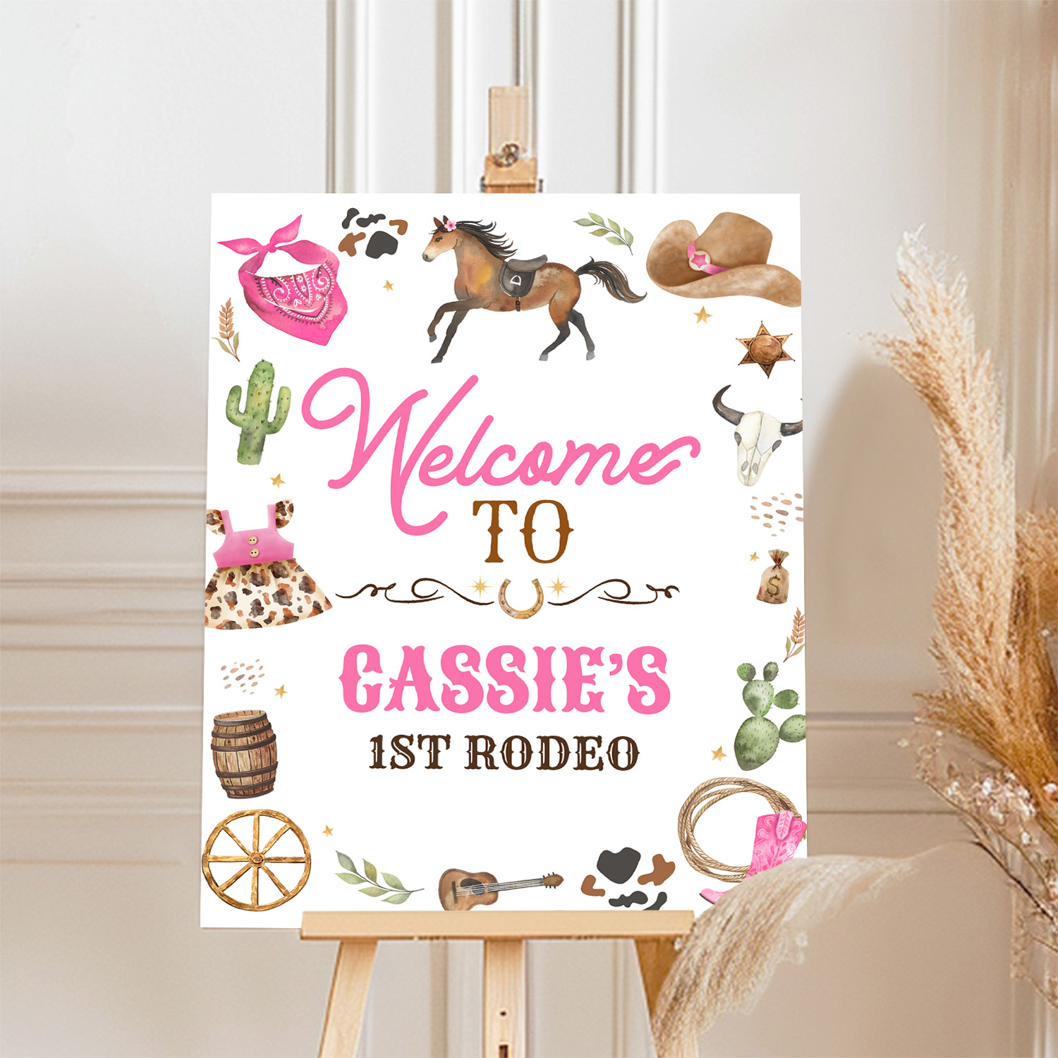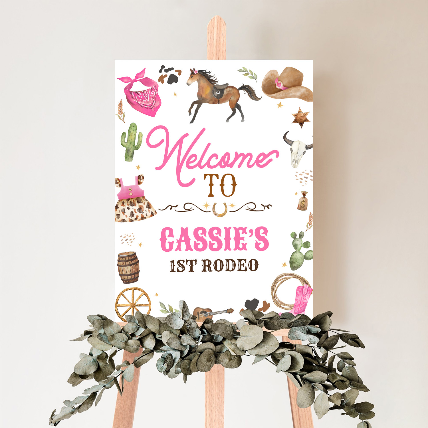 Cowgirl 1st Rodeo Pink Welcome Sign